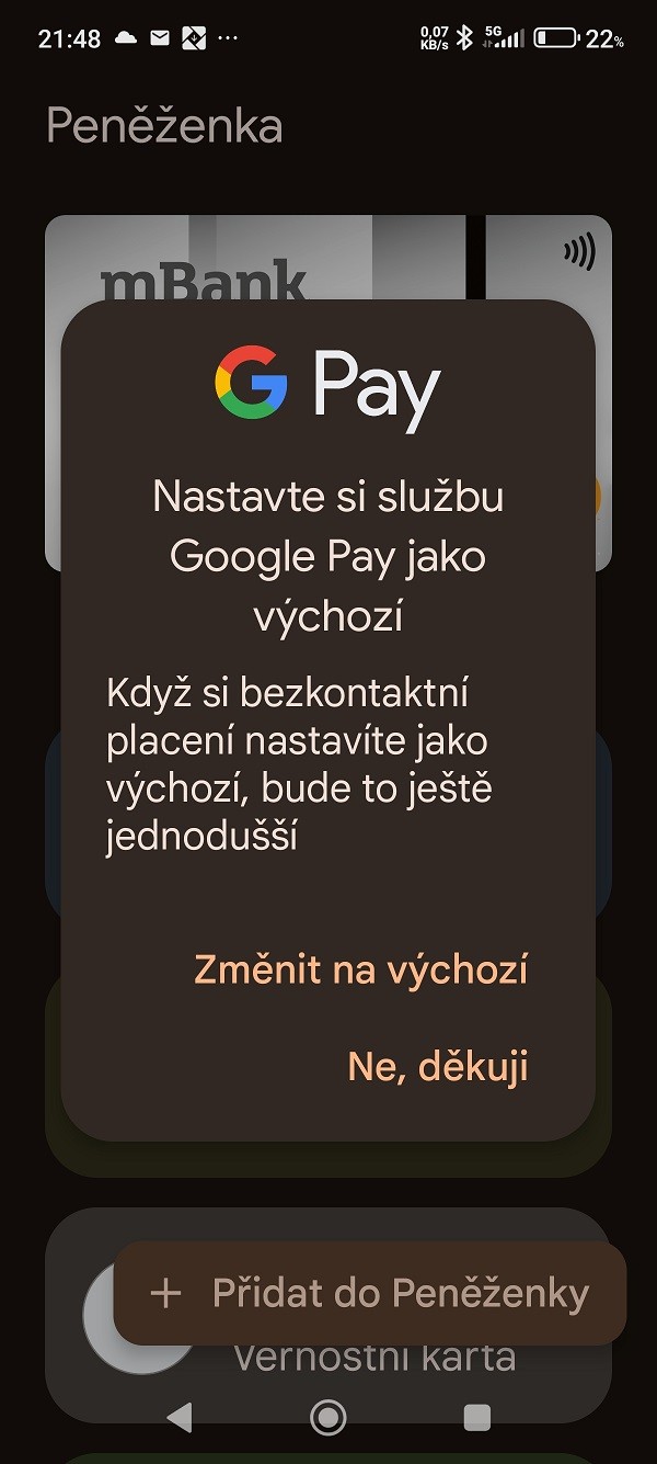 Prvním a klíčovým krokem je dočasná změna výchozí aplikace pro NFC platby.