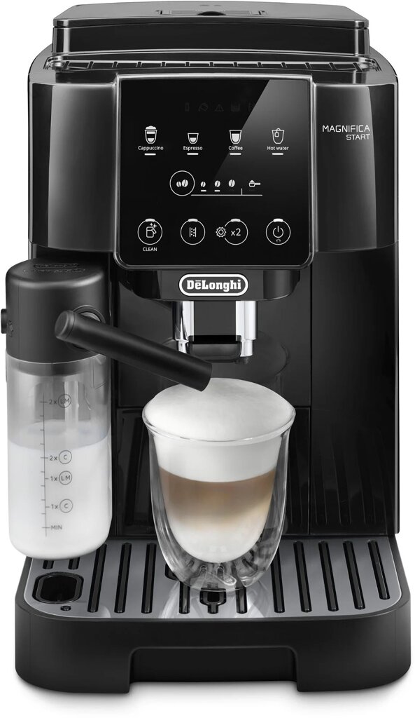 Plně automatický kávovar DeLonghi Magnifica Start ECAM 220.60.B s prémiovou technologií LatteCrema Hot. Přehledný dotykový panel, černobílé ikony, nápoje jedním dotykem, čerstvé mletí zrn - 250g nádoba na zrna, vyjímatelné komponenty vhodné do myčky, moderní design.