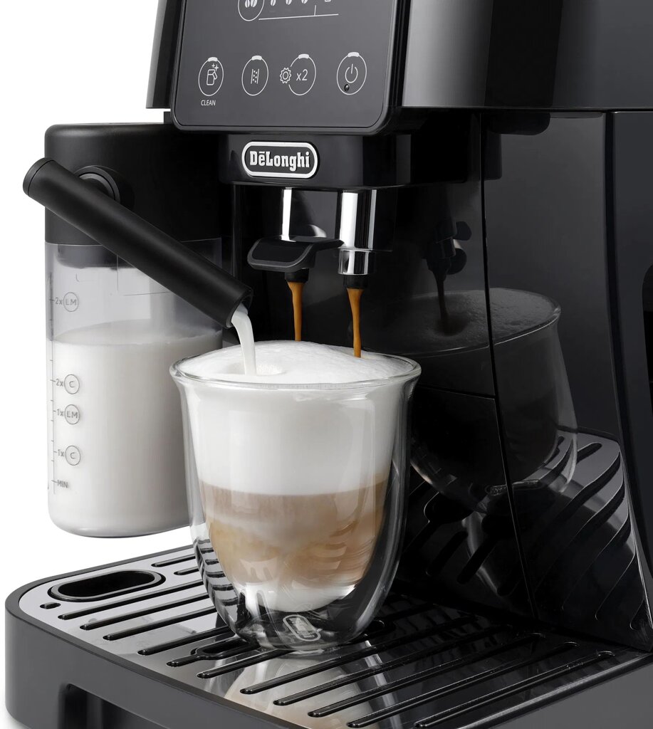 Magnifica Start dokáže vytvořit 4 kávové nápoje jediným dotykem, vaše pohodlí je na prvním místě. Pochutnávejte si na Espressu, Kávě, Cappuccinu, Horké vodě.