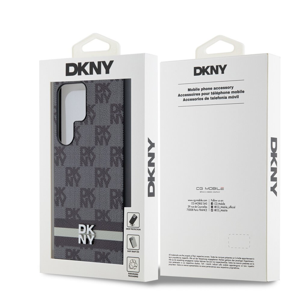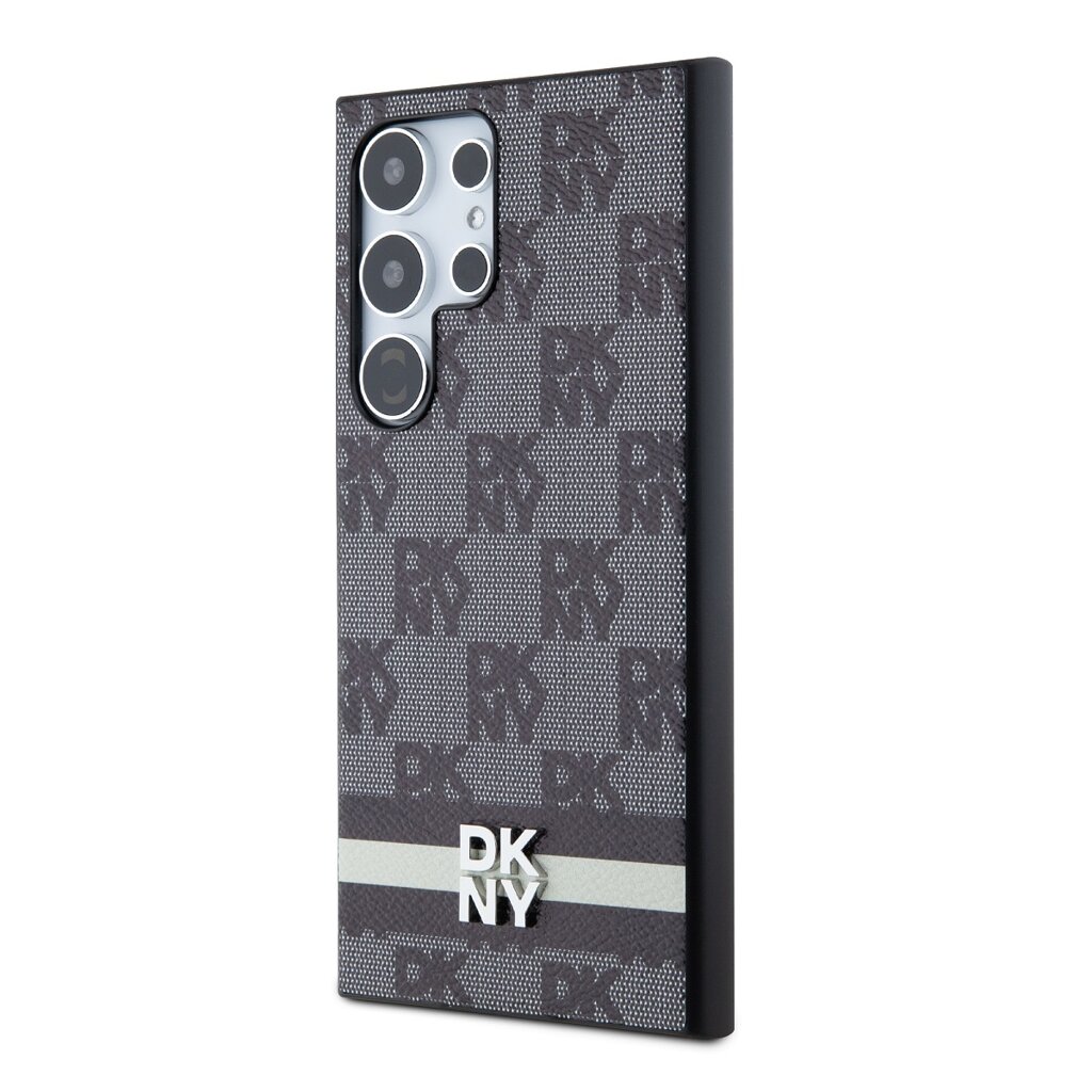 DKNY PU Leather Checkered Pattern and Stripe Zadní Kryt pro Samsung Galaxy S24 Ultra Black