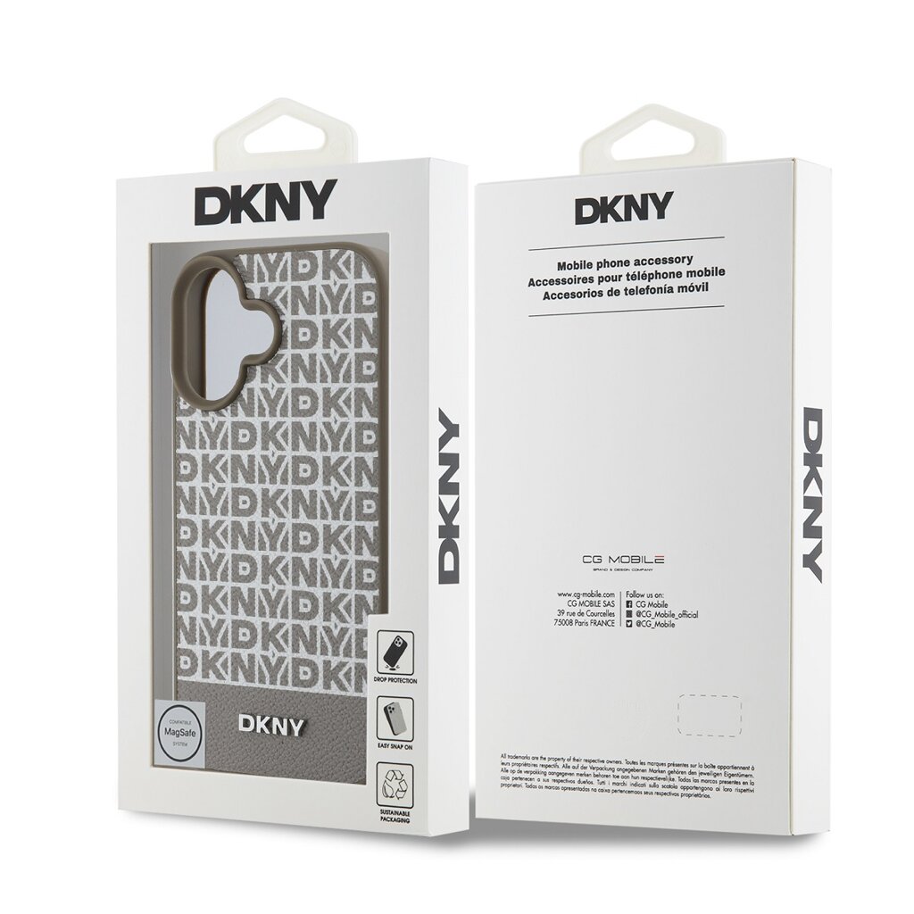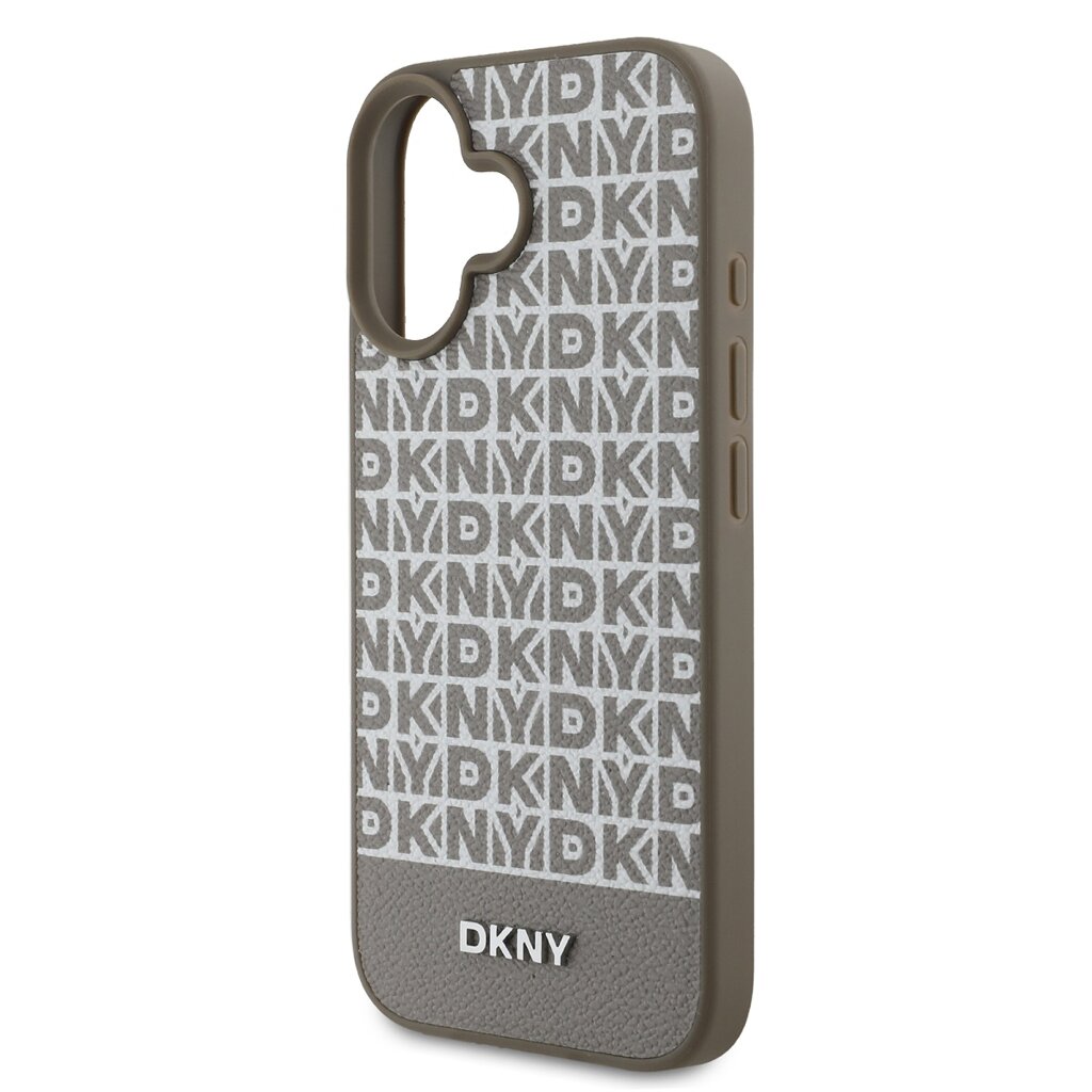 DKNY PU Leather Repeat Pattern Bottom Stripe MagSafe Zadní Kryt pro iPhone 16 Brown