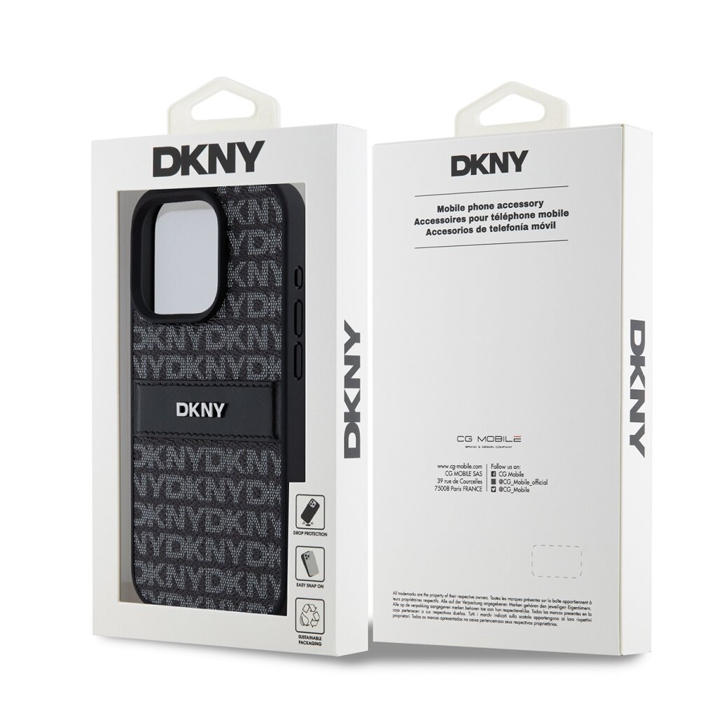 DKNY PU Leather Repeat Pattern Tonal Stripe Zadní Kryt pro iPhone 15 Pro Max Black