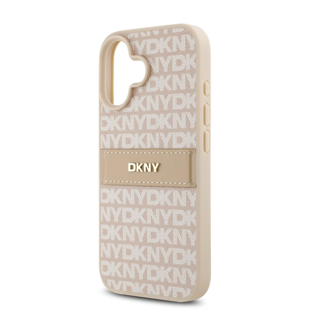DKNY PU Leather Repeat Pattern Tonal Stripe Zadní Kryt pro iPhone 16 Plus Pink