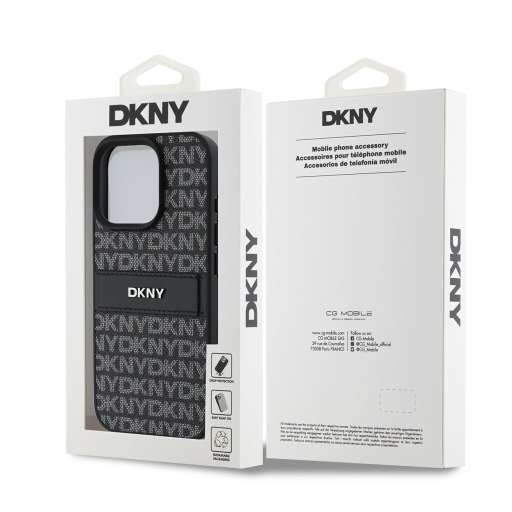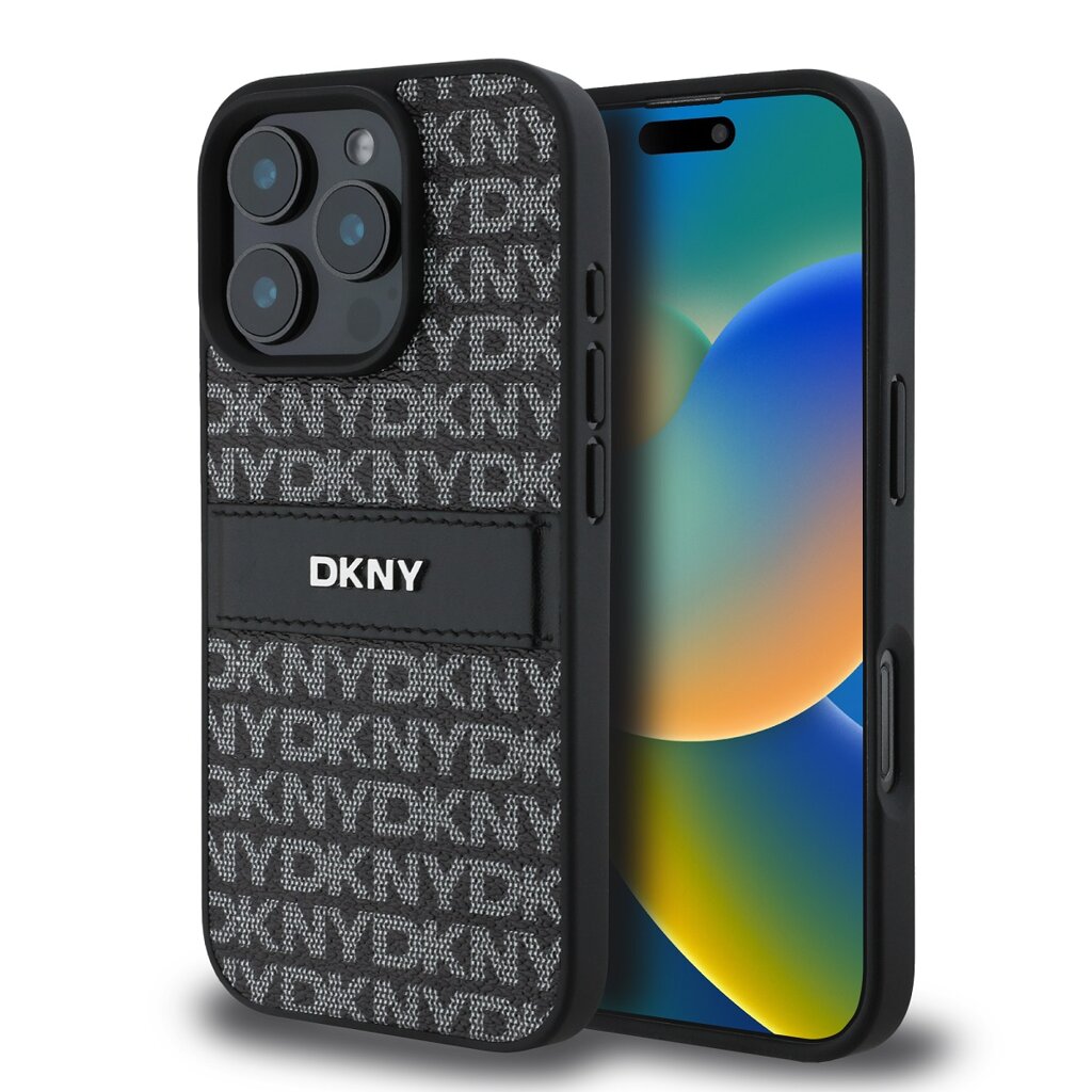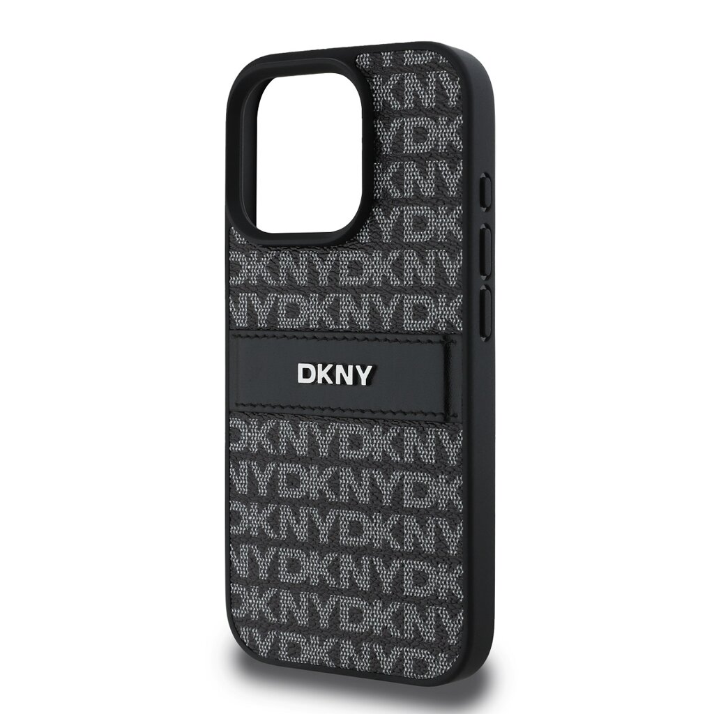 DKNY PU Leather Repeat Pattern Tonal Stripe Zadní Kryt pro iPhone 16 Pro Black