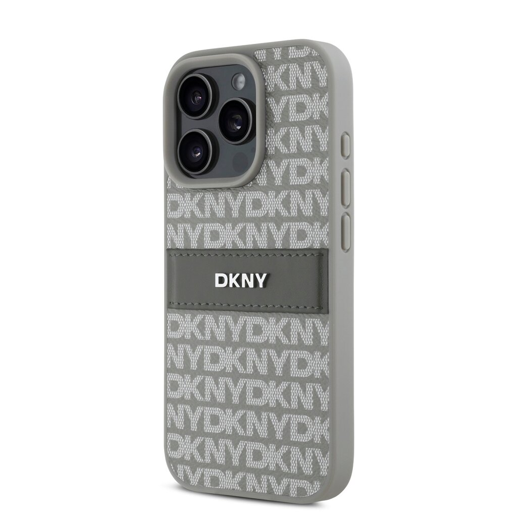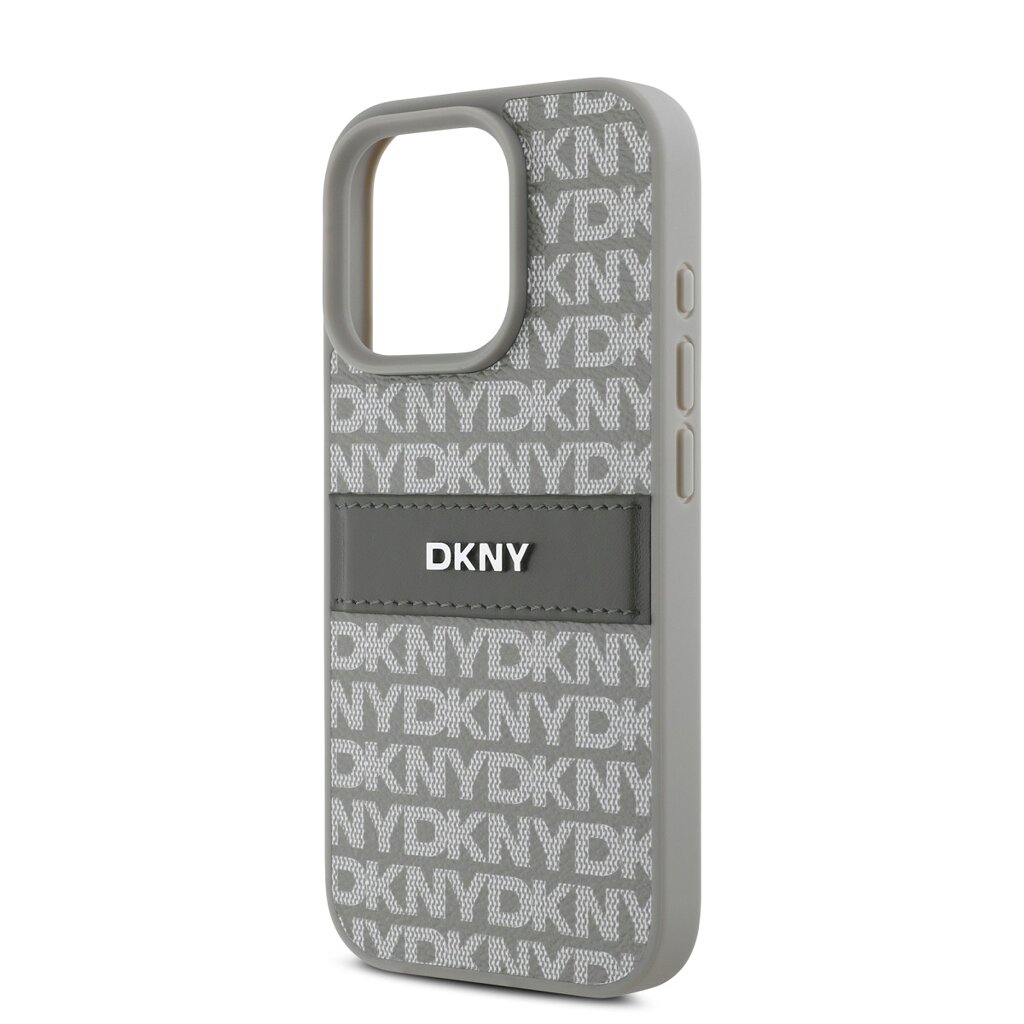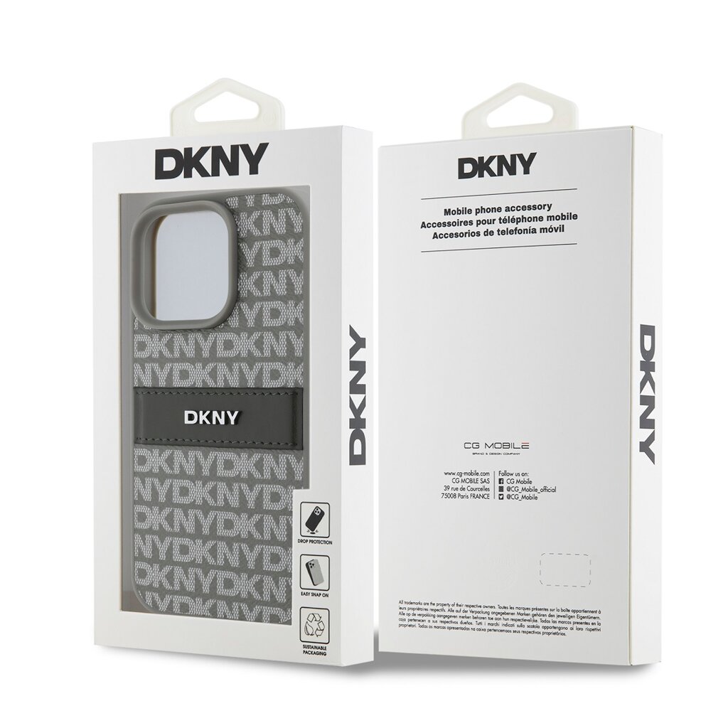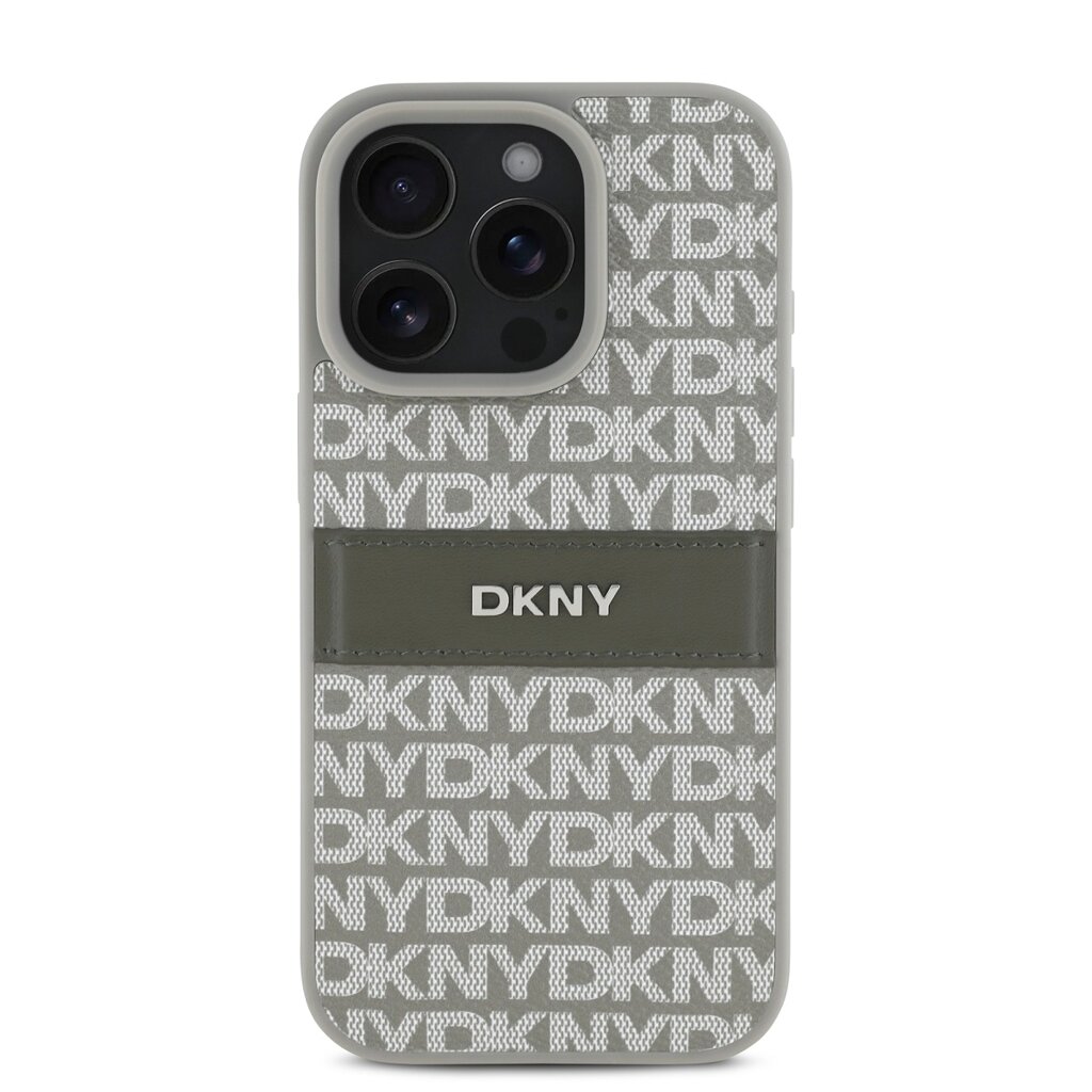 DKNY PU Leather Repeat Pattern Tonal Stripe Zadní Kryt pro iPhone 16 Pro Max Beige