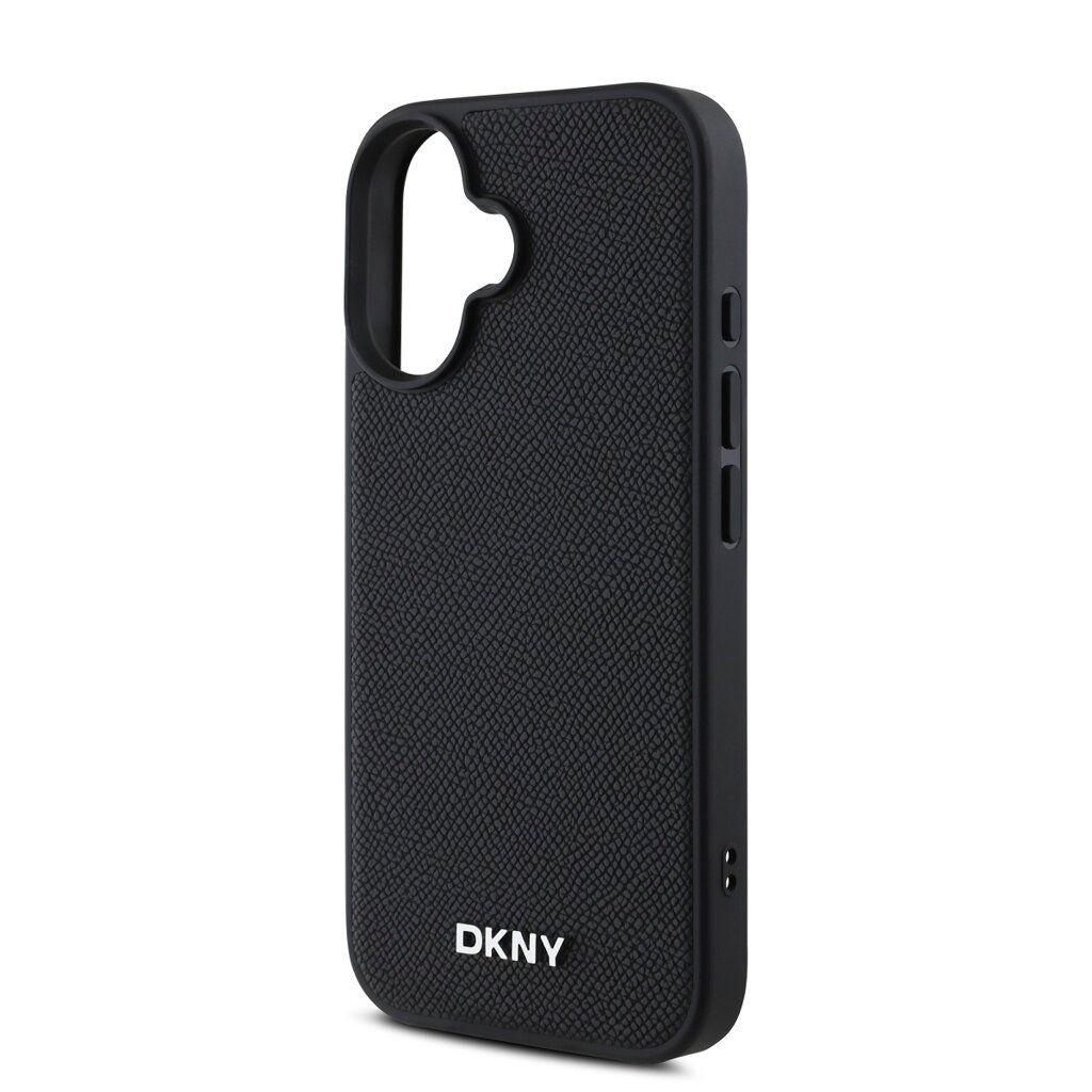 DKNY PU Leather Silver Metal Logo Magsafe Zadní Kryt pro iPhone 16 Plus Black