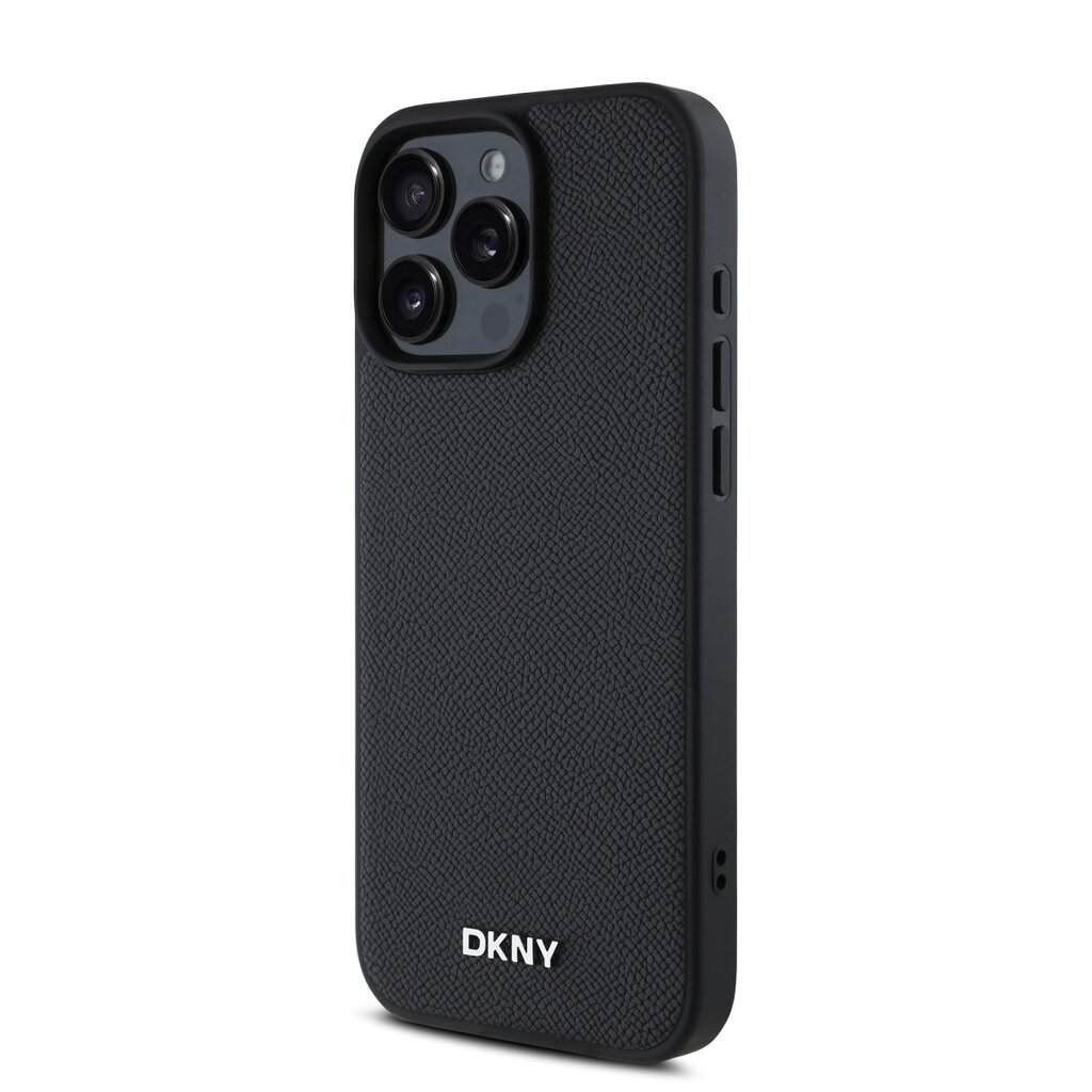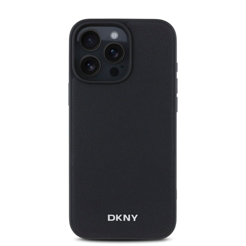 DKNY PU Leather Silver Metal Logo Magsafe Zadní Kryt pro iPhone 16 Pro Black