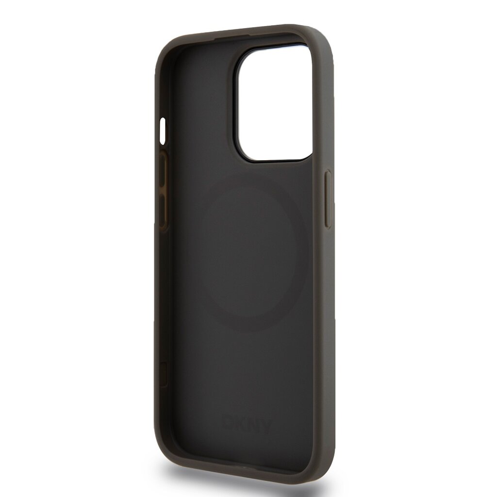 DKNY PU Leather Stack Logo Magsafe Zadní Kryt pro iPhone 15 Pro Max Grey
