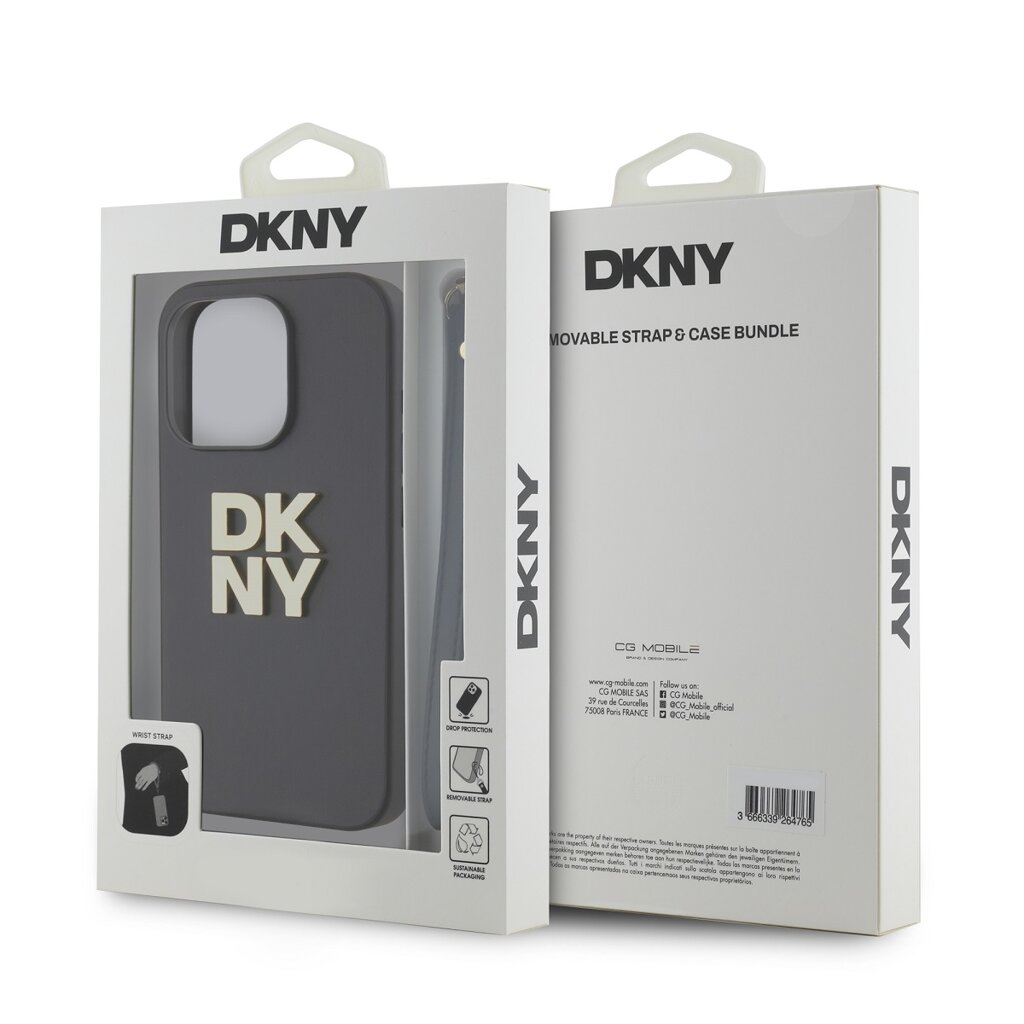 DKNY PU Leather Stack Logo Wrist Strap Zadní Kryt pro iPhone 14 Pro Black