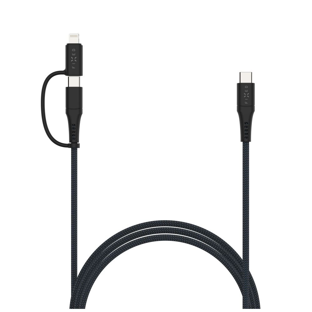 Dlouhý nabíjecí a datový opletený kabel FIXED s konektory USB-C/USB-C a Lightning adaptérem, PD, 2m,