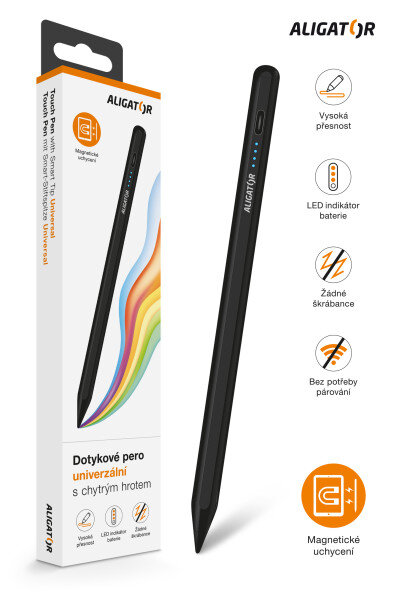 Za pomoci důmyslně umístěného magnetu je možné dotykové pero Aligator připevnit k boční straně tabletu nebo jiného zařízení, které tuto užitečnou vlastnost podporuje. To vše je možné díky ergonomickému tvaru, který také zajistí pohodlí při práci a snižuje únavu ruky.