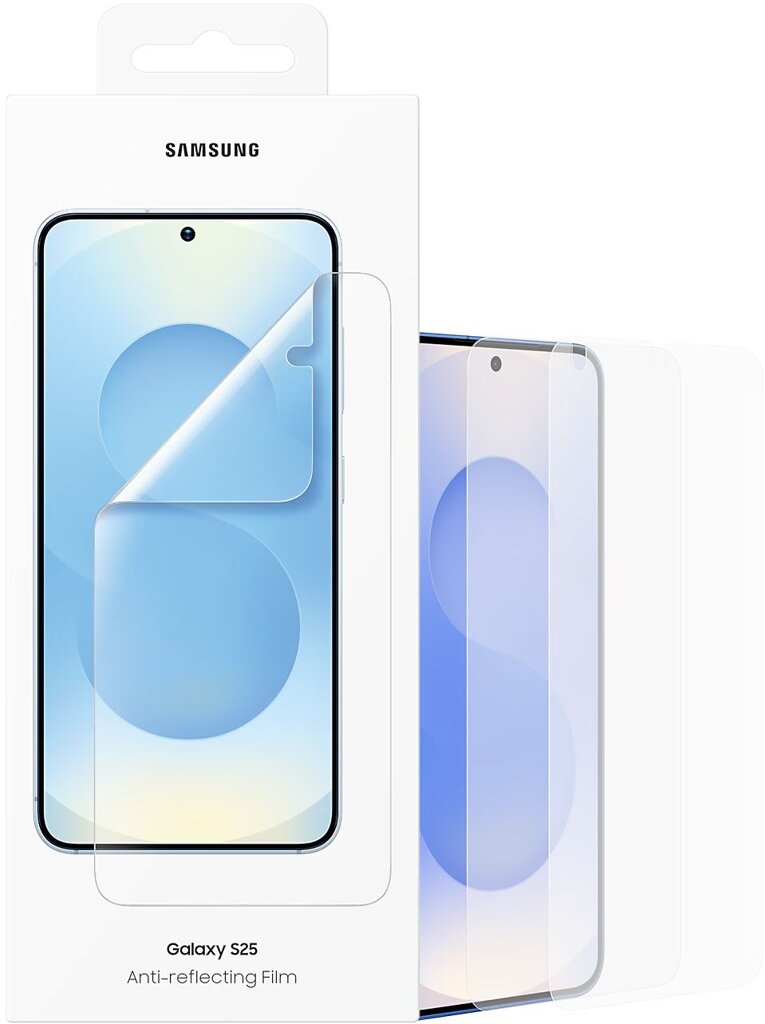Ochranná fólie Samsung Transparent pro novinkový smartphone Galaxy S25. Snížení úrovně světelných odrazů displeje, ochrana před prachem a otisky prstů.
