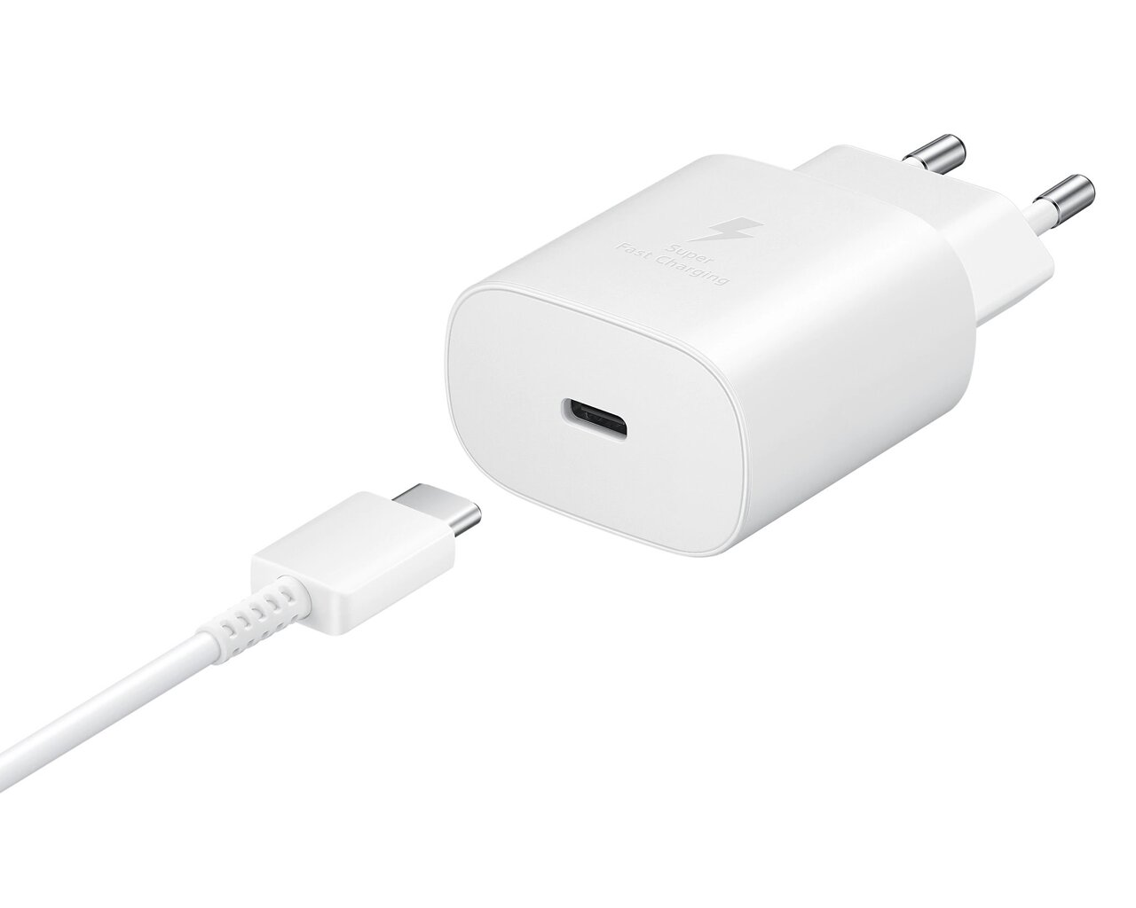 "Samsung cestovní nabíječka do sítě s USB-C výstupem, maximálním výkonem 25W a USB-C datový kabel. Disponuje distribucí nabíjecího proudu a napětí Power delivery , který umožní vybrat vždy ten nejvhodnější nabíjecí proud a napětí přímo pro Vaše zařízení. Nabíječka je vhodná nejen pro telefony a příslušenství Samsung, lze jí nabíjet telefony všech značek, případně další příslušenství, které podporuje nabíjení z USB portu. Je vybavena pokročilou několika stupňovou ochranou a to proti přebití, zkratu, přehřátí a přepólování. Vlastnosti: - Maximální výkon 25 W - Výstup USB-C - kabel součástí USB-C na USB-C (1m) - Výstup PDO: 9V/2,77A / PPS: 3,3-5,9V/3A
