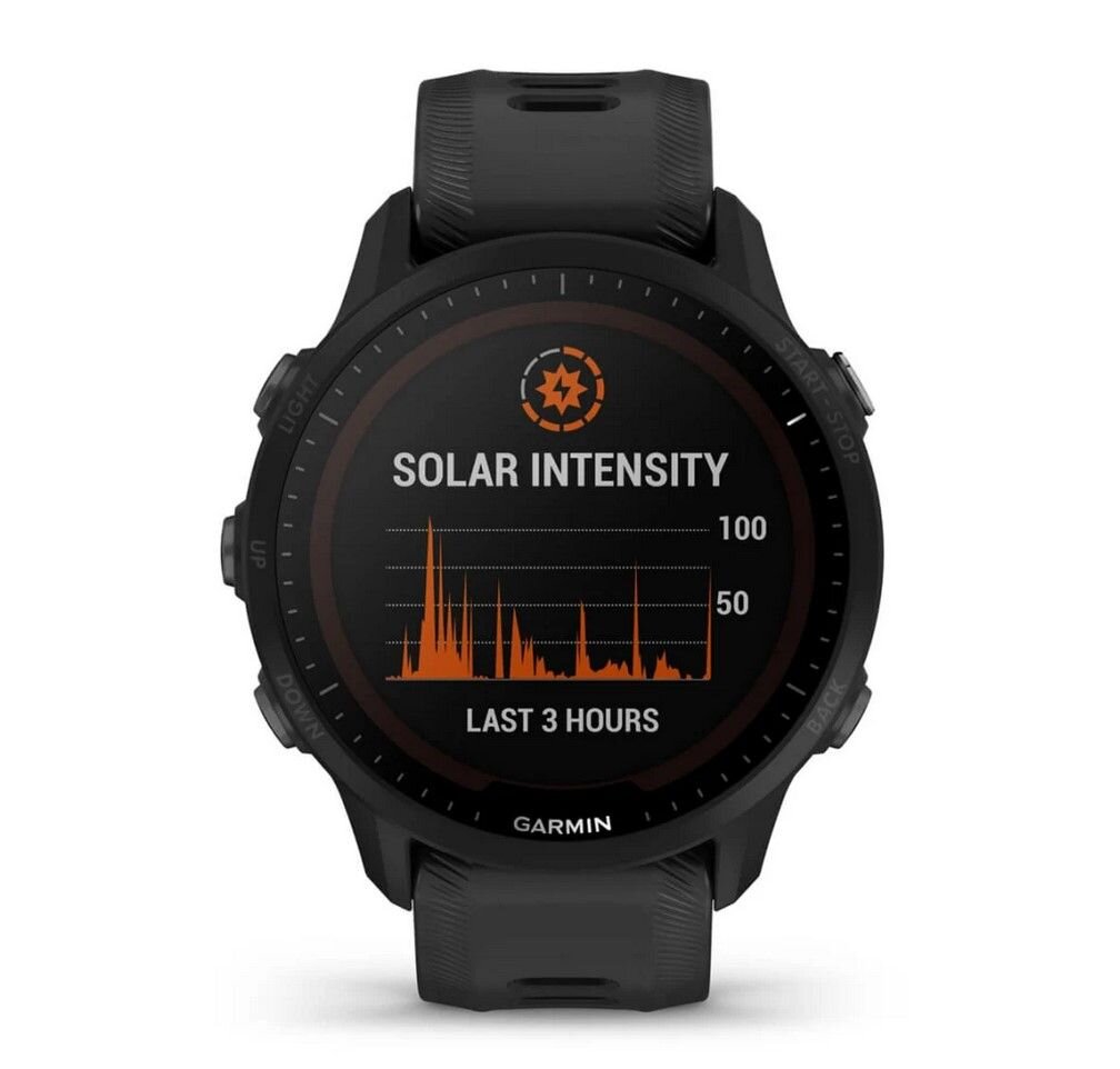 Chytré hodinky Garmin Forerunner 955 Solar využívají energii slunce díky solární nabíjecí čočce Power Glass. Výdrž baterie až 49 h v režimu GPS se solárním nabíjením, až 20 dní v režimu chytrých hodinek, dotykový displej, 5 ATM, Garmin Pay, Garmin Coach, vícepásmové GNSS s technologií SatIQ, funkce Health Snapshot, snímač Pulse Ox.
