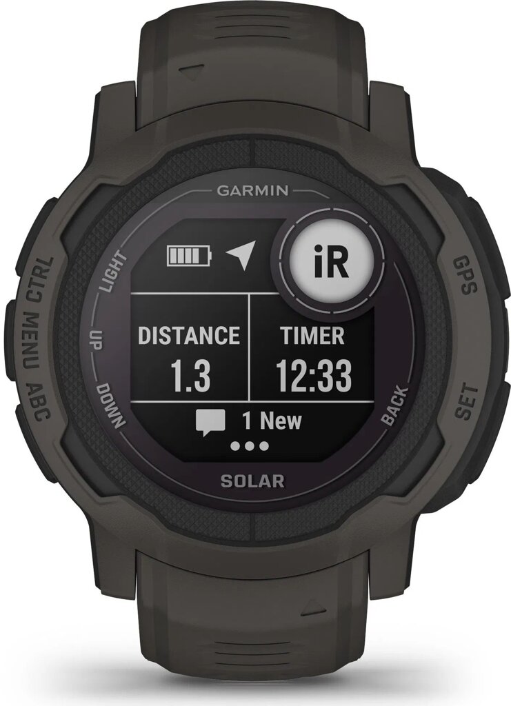 Chytré GPS hodinky Garmin Instinct 2 Solar se solárním dobíjením - v outdoorovém provedení. Nabízí i Garmin Pay, vestavěné ABC senzory, příjem satelitních systémů, platformu Connect IQ, aplikaci Garmin Connect, detekci nehody, měření VO2 Max, regeneračního asistenta, měření tepu, monitoring spánku, pulzní oxymetr, funkci Body Battery a Stress Score.