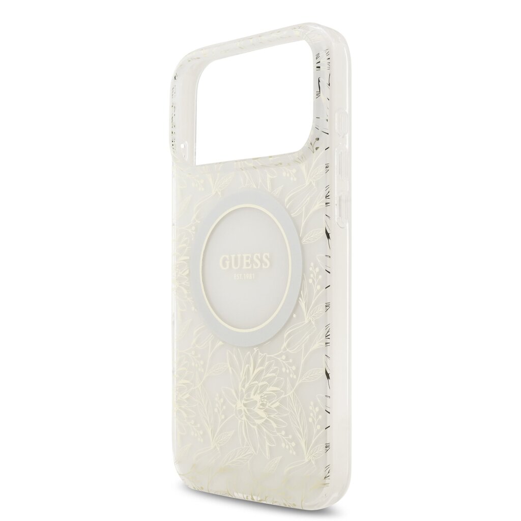 Guess IML Flowers Allover Strap MagSafe Zadní Kryt pro iPhone 17 Pro Max White