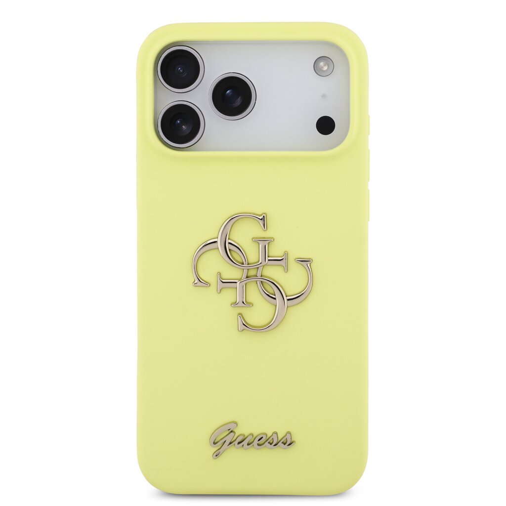 Guess Liquid Silicone 4G Metal Logo Zadní Kryt pro iPhone 17 Pro Max Yellow