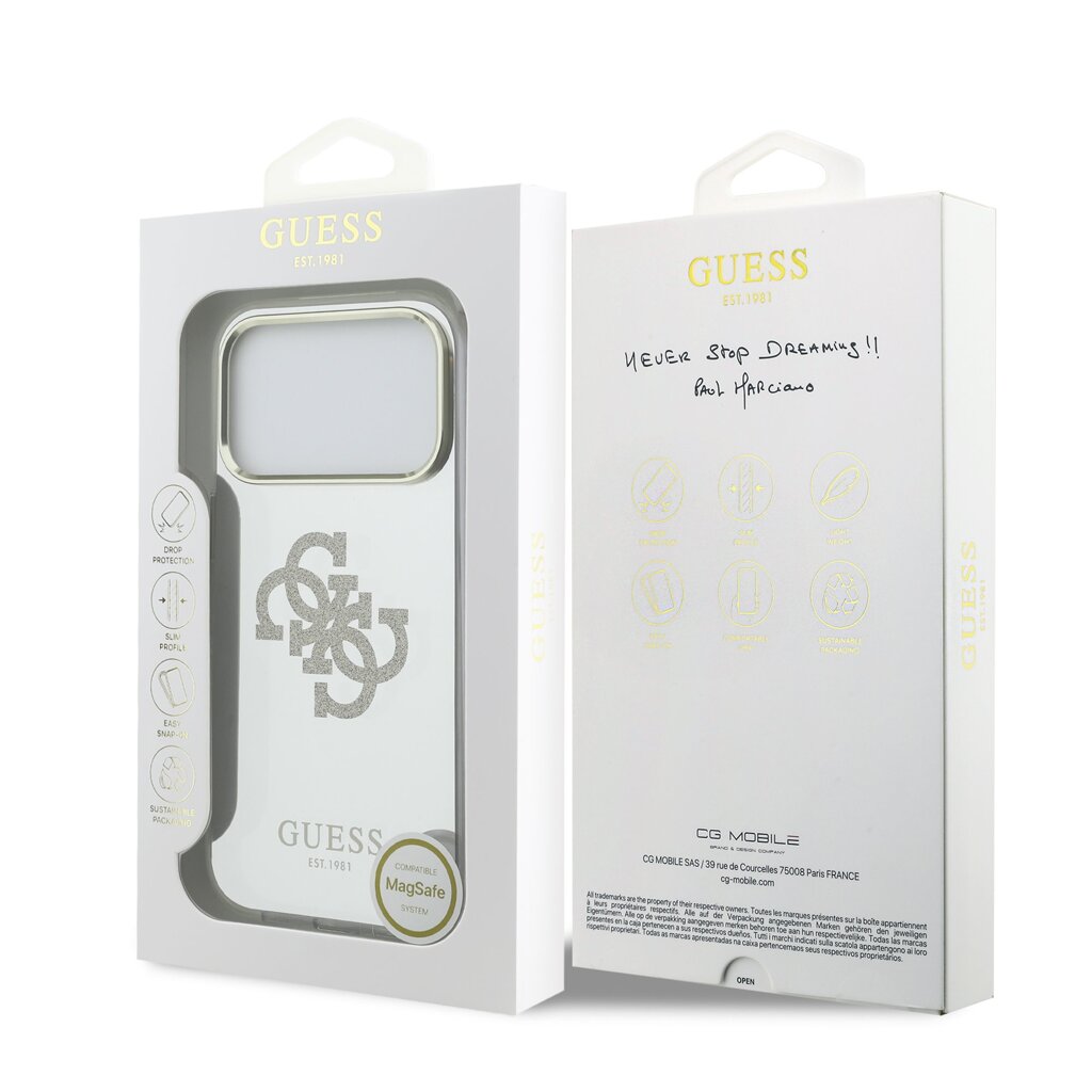 Guess PC/TPU Mirror 4G Glitter Logo MagSafe Zadní Kryt pro iPhone 17 Pro Gold