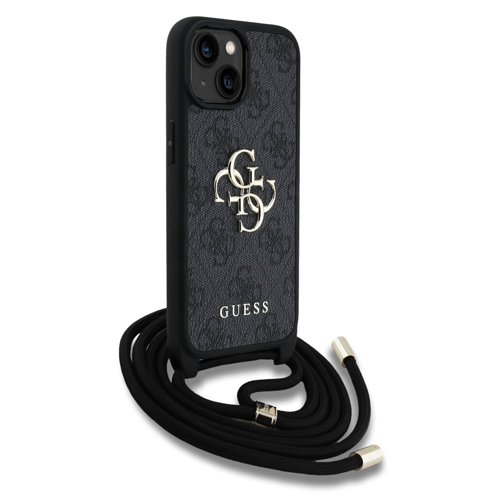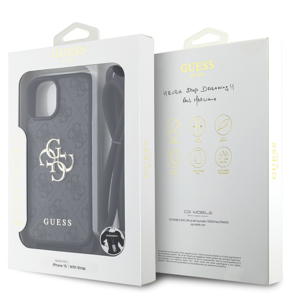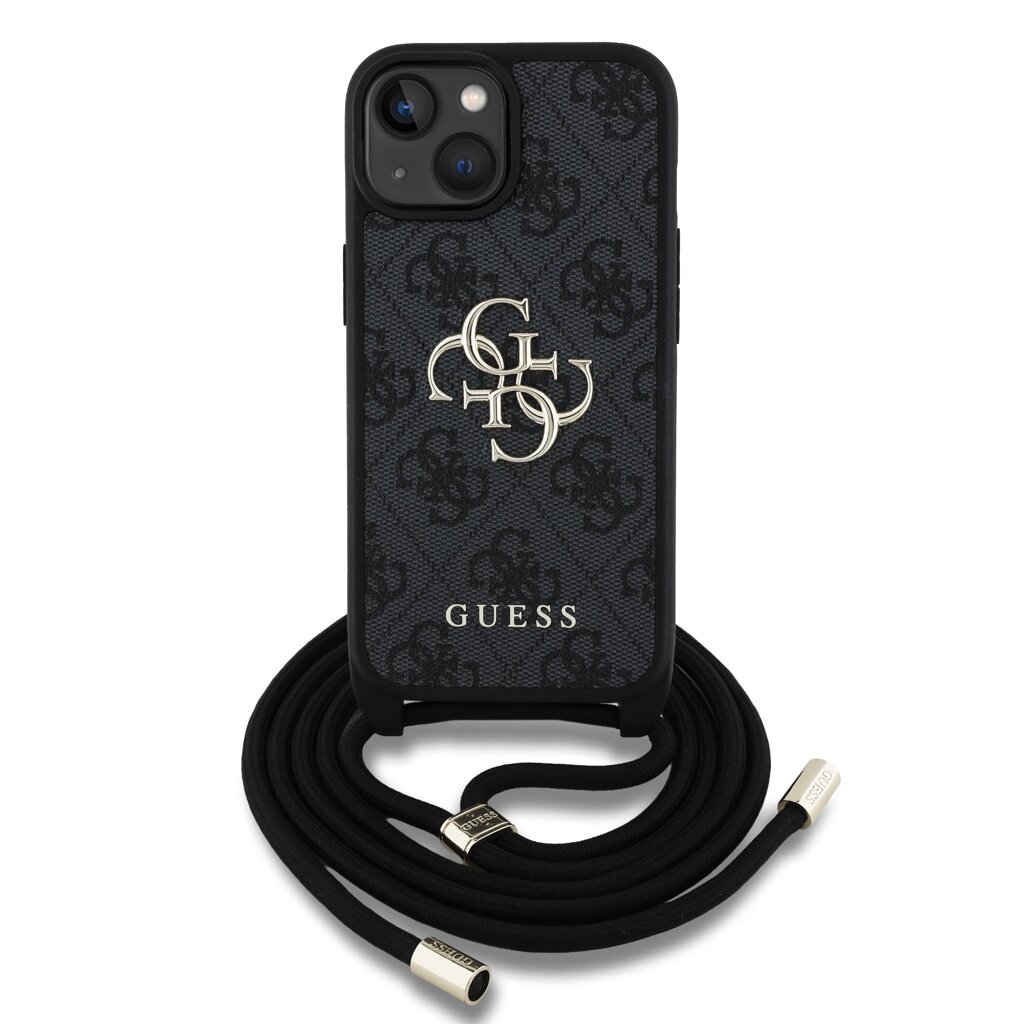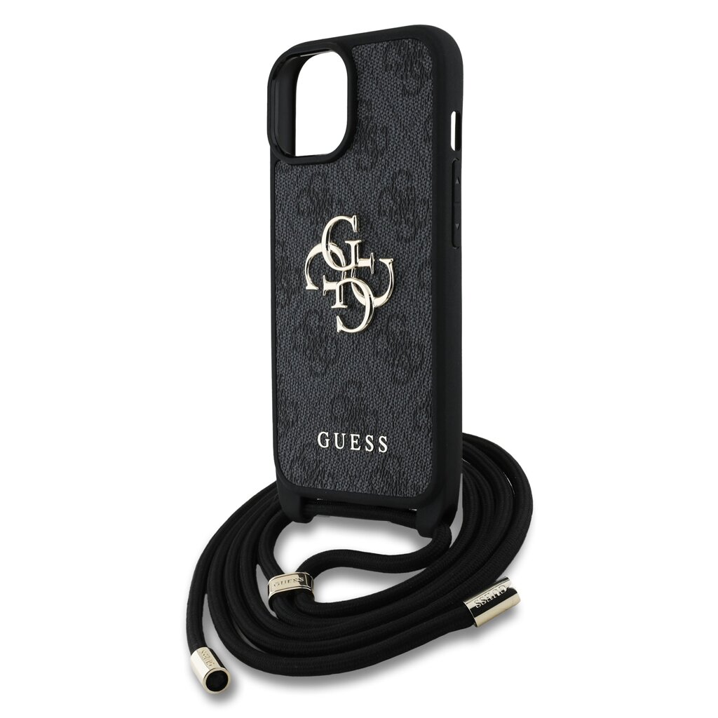 Guess PU 4G Metal Logo Crossbody Popruh Zadní Kryt pro iPhone 15 Black