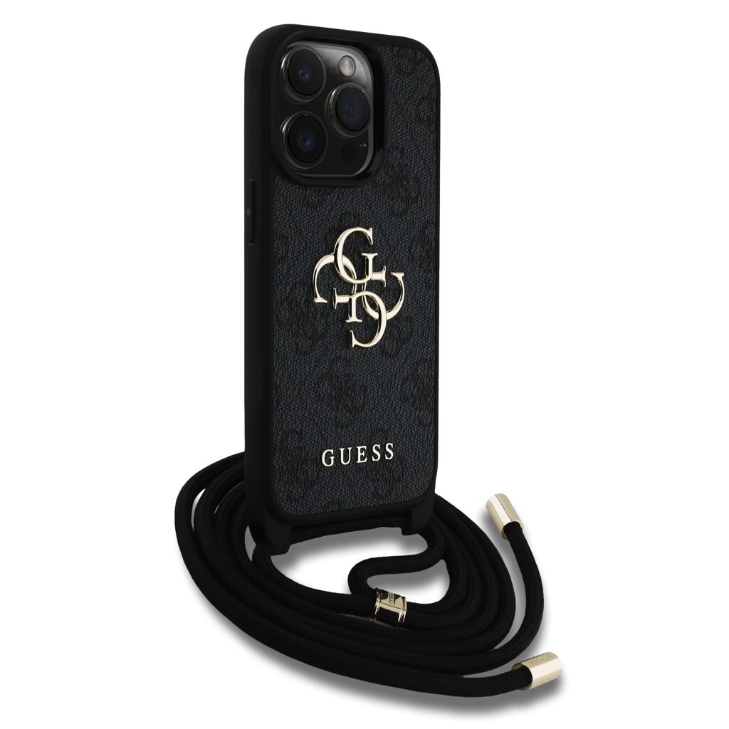 Guess PU 4G Metal Logo Crossbody Popruh Zadní Kryt pro iPhone 15 Pro Black