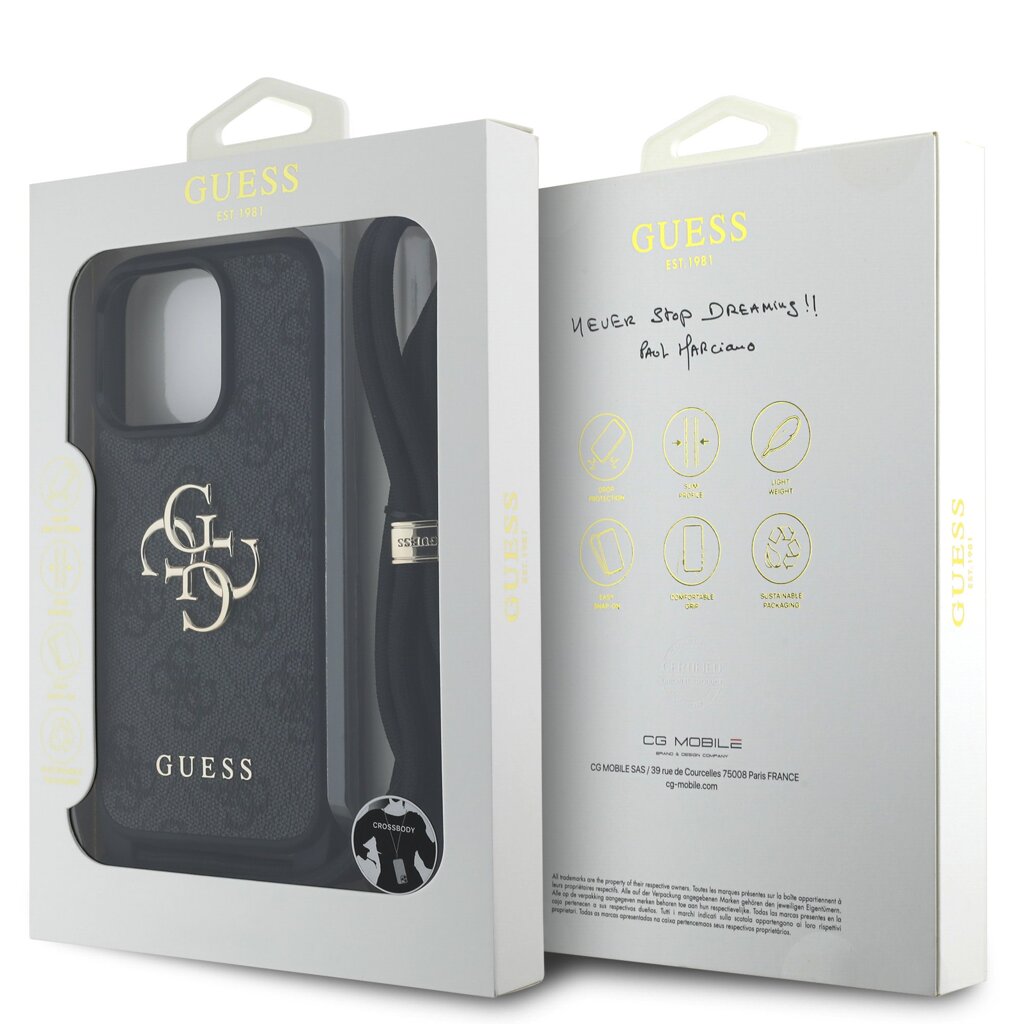 Guess PU 4G Metal Logo Crossbody Popruh Zadní Kryt pro iPhone 16 Pro Max Black