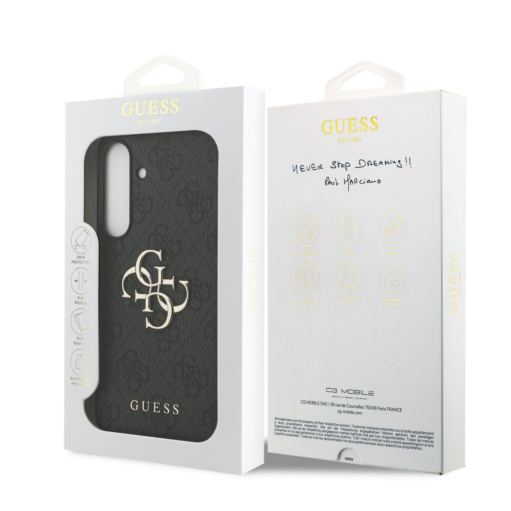 Prémiový zadní kryt Guess PU 4G Metal Logo se vyznačuje elegantním, charakteristickým 4G vzorem, doplněným o logo GUESS. Kryt je vyrobený z lehkého a odolného polyuretanu (PU) s povrchovou úpravou z PU kůže a nabízí tak nejen skvělou ochranu telefonu, ale také pohodlí při používání. Tato povrchová úprava zajišťuje pevný úchop, což minimalizuje riziko, že telefon vyklouzne z ruky. Díky přesnému tvaru perfektně sedí na telefonu a umožňuje snadný přístup ke všem tlačítkům a konektorům. Tento prvotřídní kryt doplněný výrazným 4G logem a je skvělou nabídkou pro lidi, kteří si v módě cení nejen exkluzivního vzhledu, ale také vysoké kvality a funkčnosti. Je to nezbytný doplněk pro každého, kdo hledá kombinaci elegance a prestiže. Klíčové vlastnosti: - Originál Guess - Dominantní kovové logo 4G - Lehký a odolný kryt z PU a PU kůže - Skvěle se drží v ruce a neklouže - Přesně kopíruje tvar telefonu a umožňuje snadný přístup k tlačítkům a konektorům. - Chrání telefon před prachem a poškrábáním - Luxusní doplněk pro váš telefon i outfit