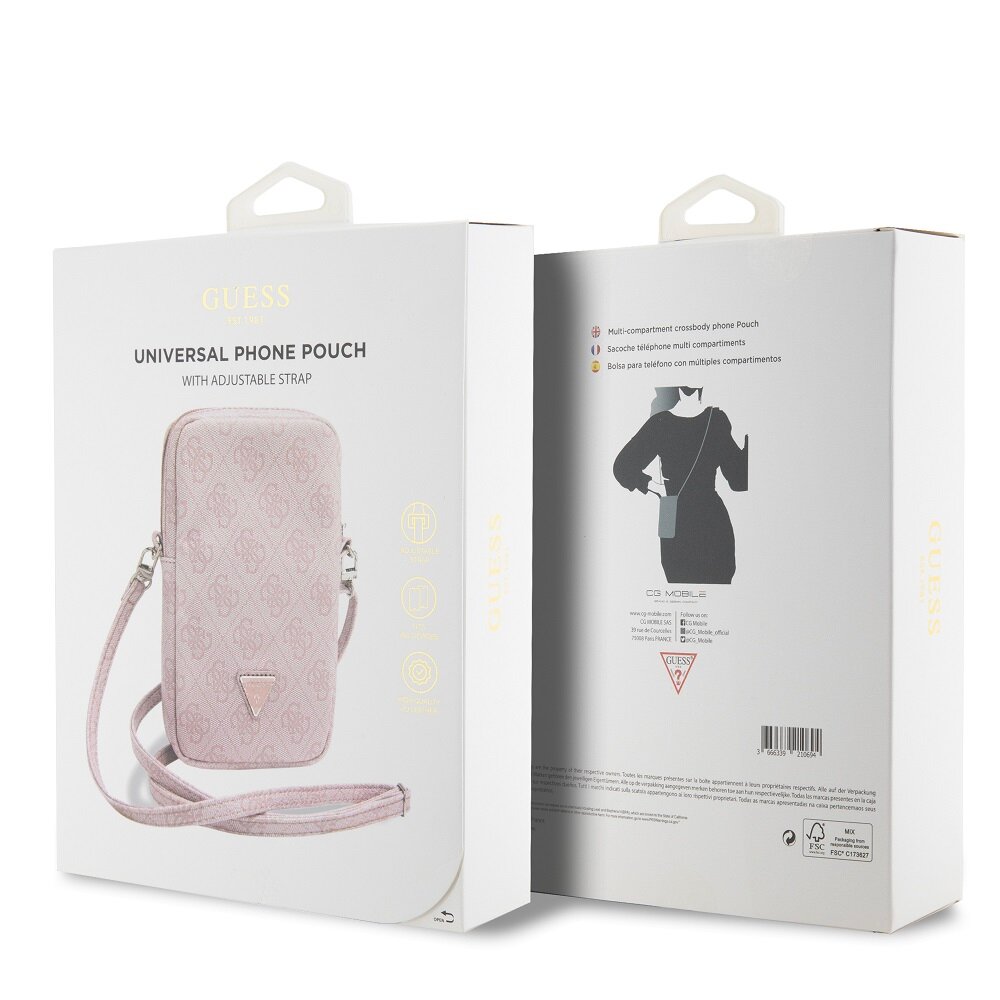 Guess PU 4G Triangle Logo Taška na Telefon se Zipem Pink