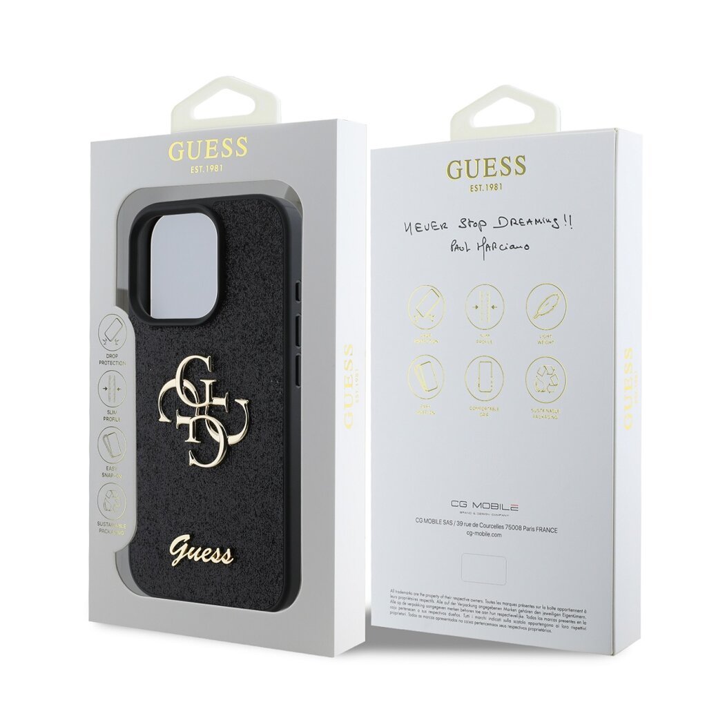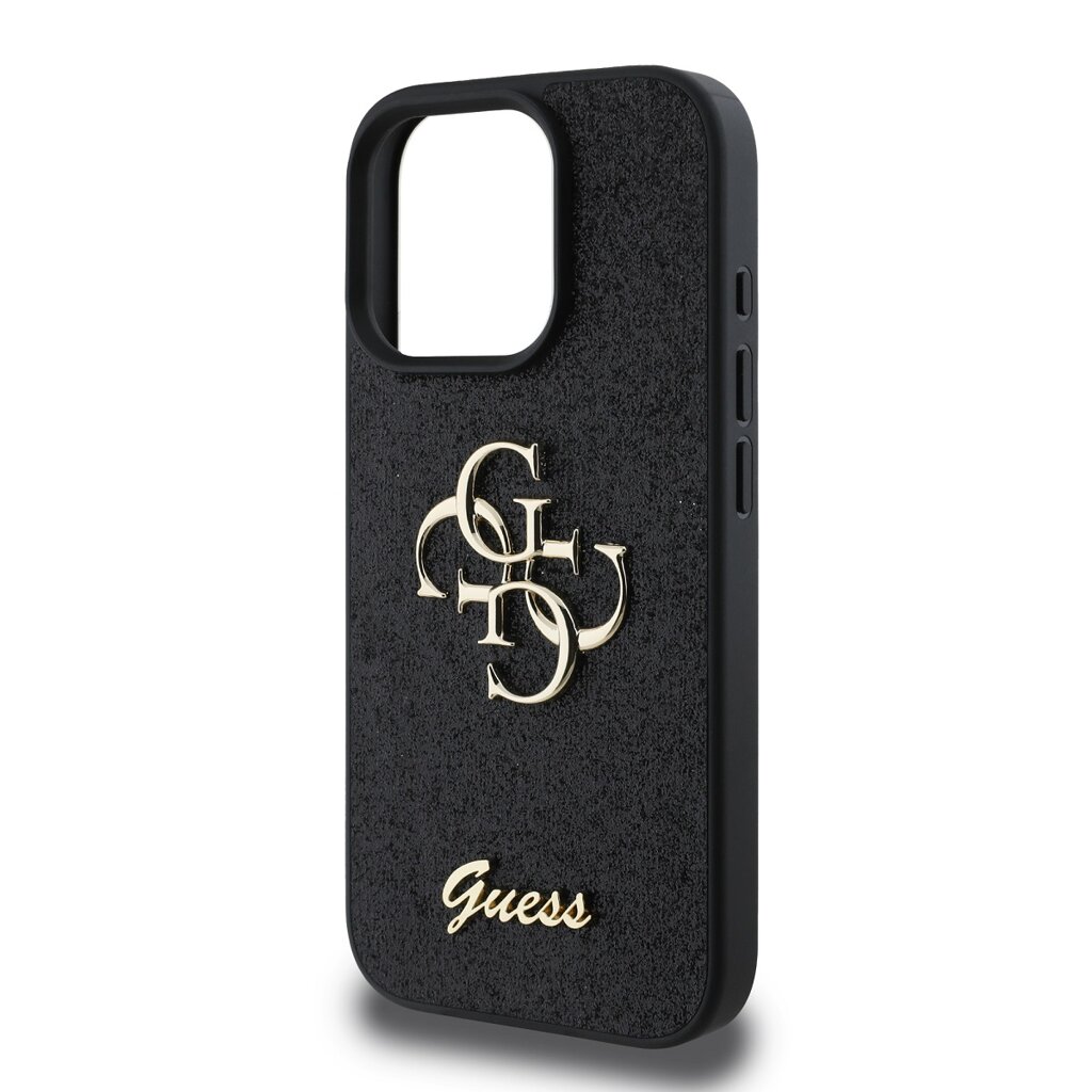 Guess PU Fixed Glitter 4G Metal Logo Zadní Kryt pro iPhone 16 Pro Max Black