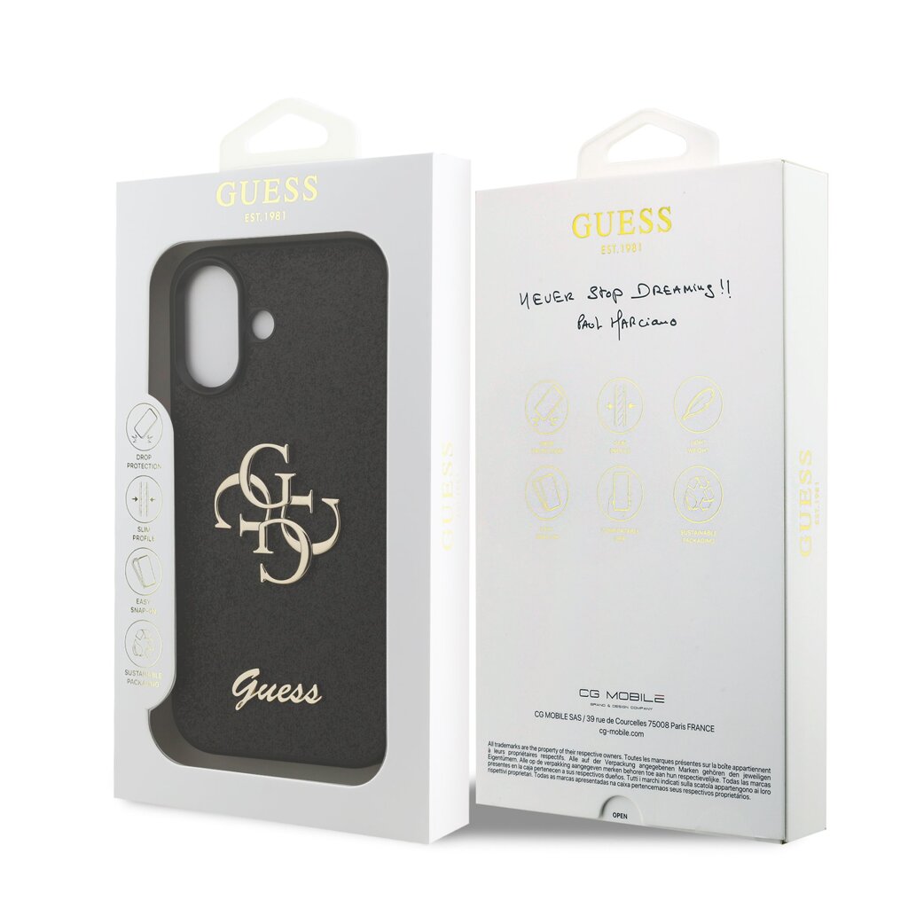 Guess PU Fixed Glitter 4G Metal Logo Zadní Kryt pro iPhone 17 Black