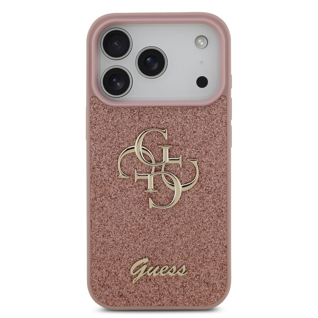 Guess PU Fixed Glitter 4G Metal Logo Zadní Kryt pro iPhone 17 Pro Pink