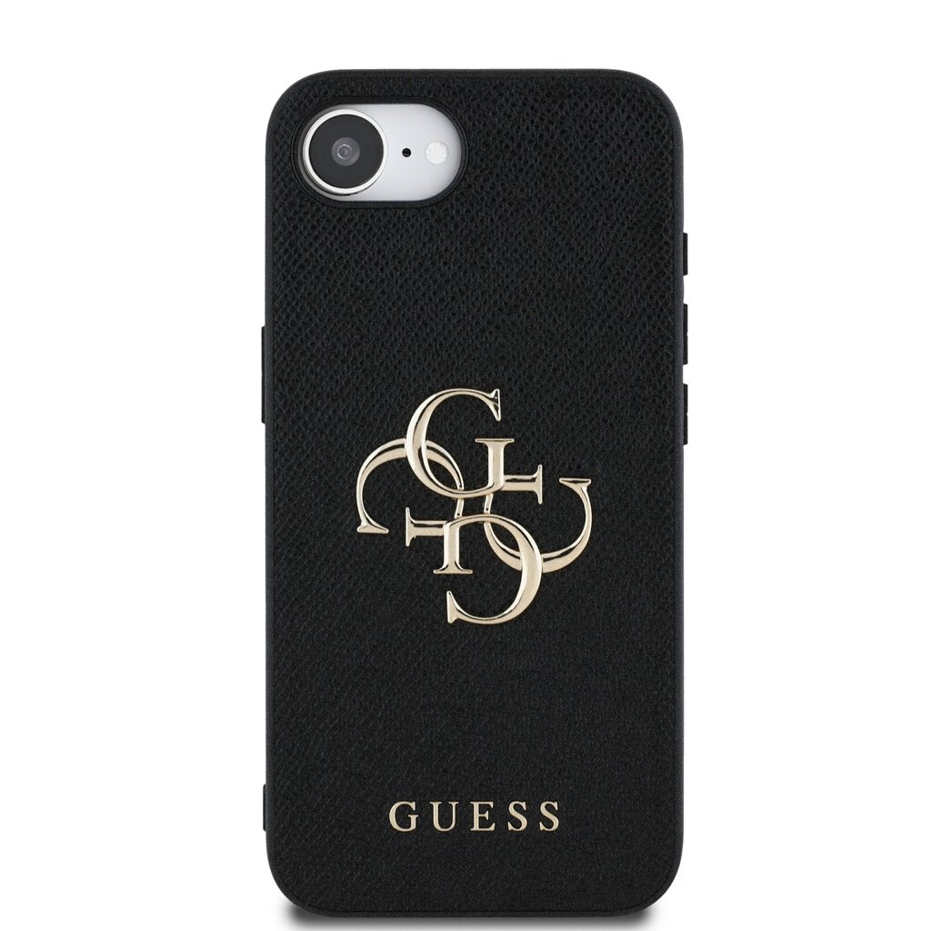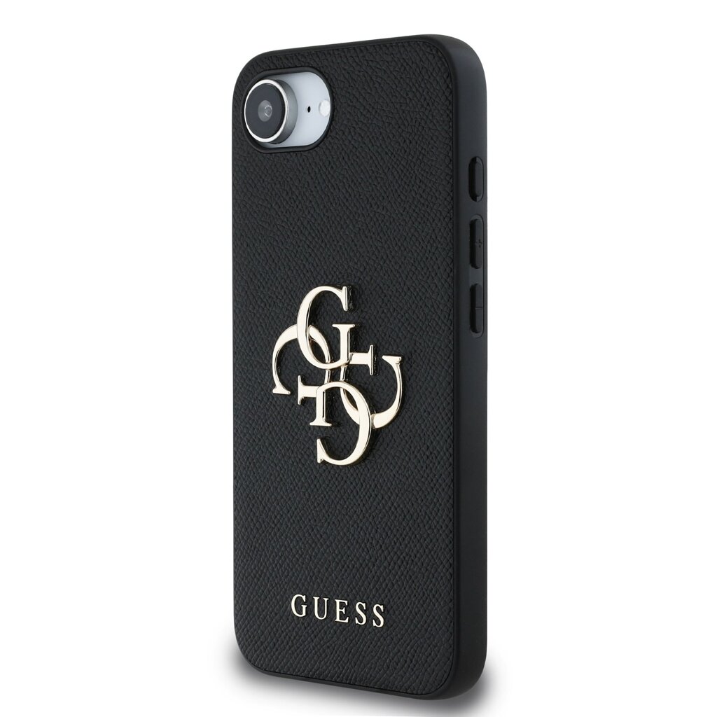 Guess PU Grained 4G Metal Logo Zadní Kryt pro iPhone 16e Black