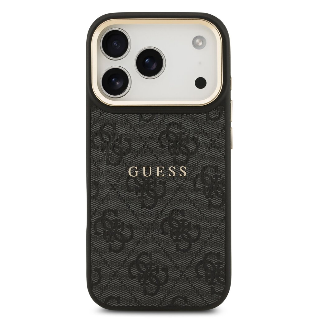 Guess PU Leather 4G Gold Frame MagSafe Zadní Kryt pro iPhone 17 Pro Black