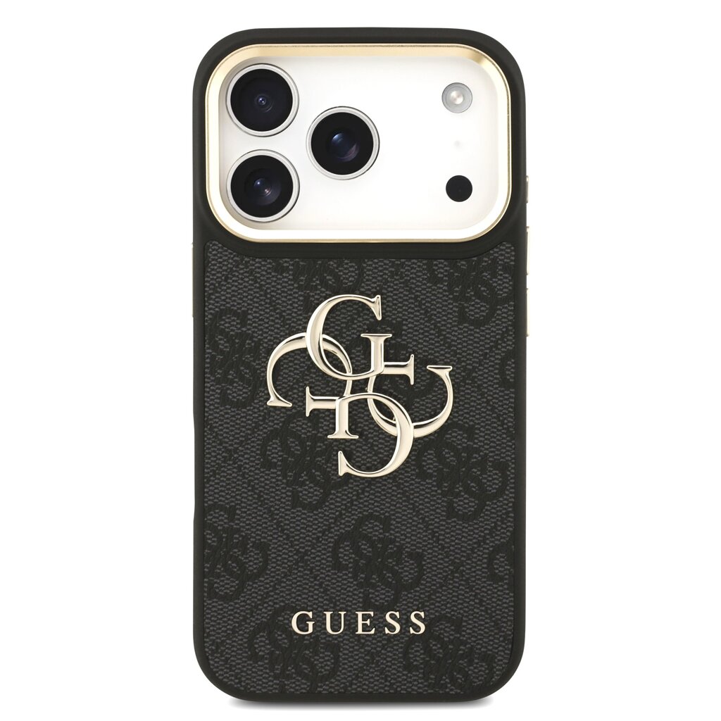 Guess PU Leather 4G Metal Logo Gold Frame Zadní Kryt pro iPhone 17 Pro Black