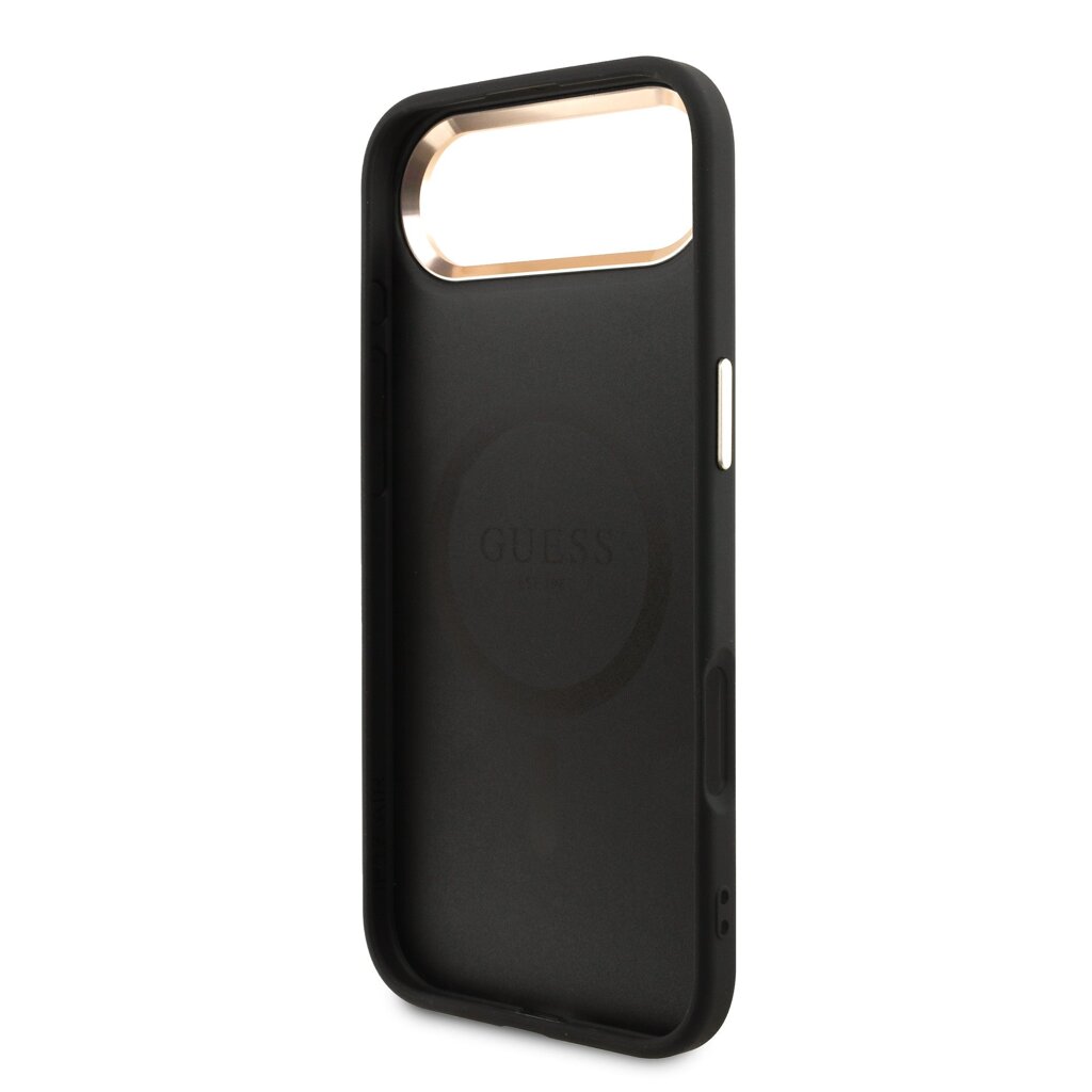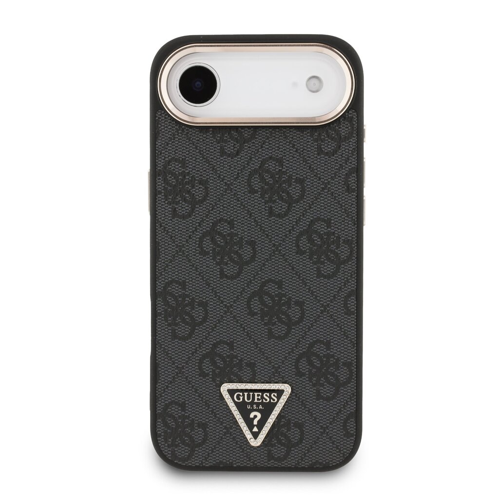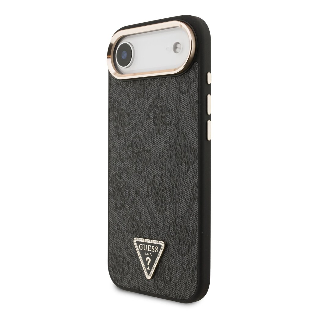 Guess PU Leather 4G Strass Triangle Logo Gold Frame MagSafe Zadní Kryt pro iPhone Air Black
