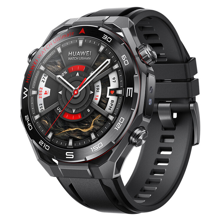 HUAWEI WATCH Ultimate 2 je hodinky stvořené pro dobrodružství, kombinující odolný a prémiový design s pokročilými funkcemi pro podvodní i outdoorové aktivity. Jeho pouzdro z ultra pevného tekutého kovu s safírovým sklíčkem a nanotechnologickou keramickou lunetou zaručuje vysokou odolnost a dlouhou životnost. Hodinky jsou vybaveny velkým 1,5palcovým LTPO displejem s maximálním jasem 3 500 nitů, který je čitelný i na přímém slunečním světle, a prodyšným fluoroelastomerovým páskem, ideálním pro náročné podmínky.