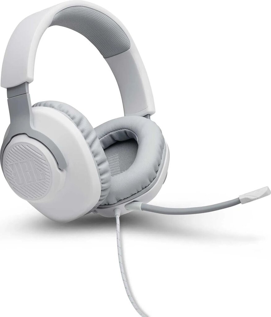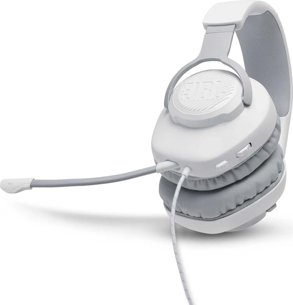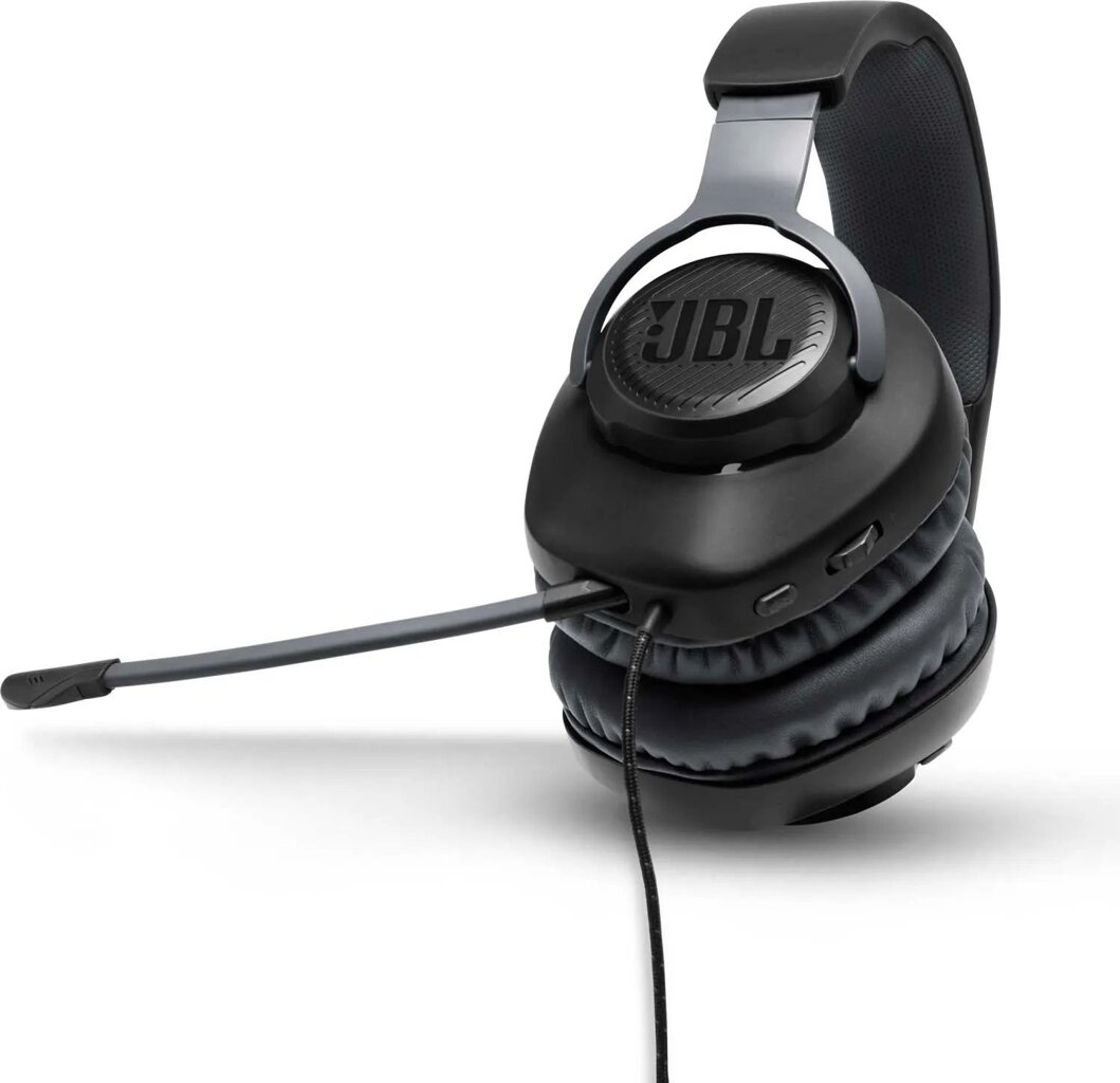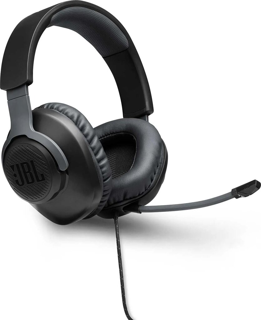 Herní kabelová sluchátka JBL Quantum 100 jsou kompatibilní s PC, Playstation, Xbox, Nintendo Switch, Mobile, Mac a VR. Zabudovaný (odpojitelný) mikrofon, 40mm ovladače, dynamický rozsah frekvenční odezvy - 20 Hz - 20 kHz, lehký design, náušníky z komfortní paměťové pěny, JBL QuantumSOUND Signature.