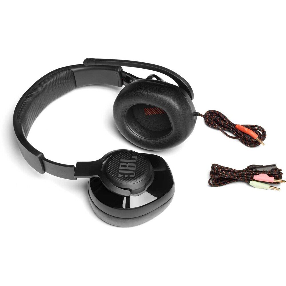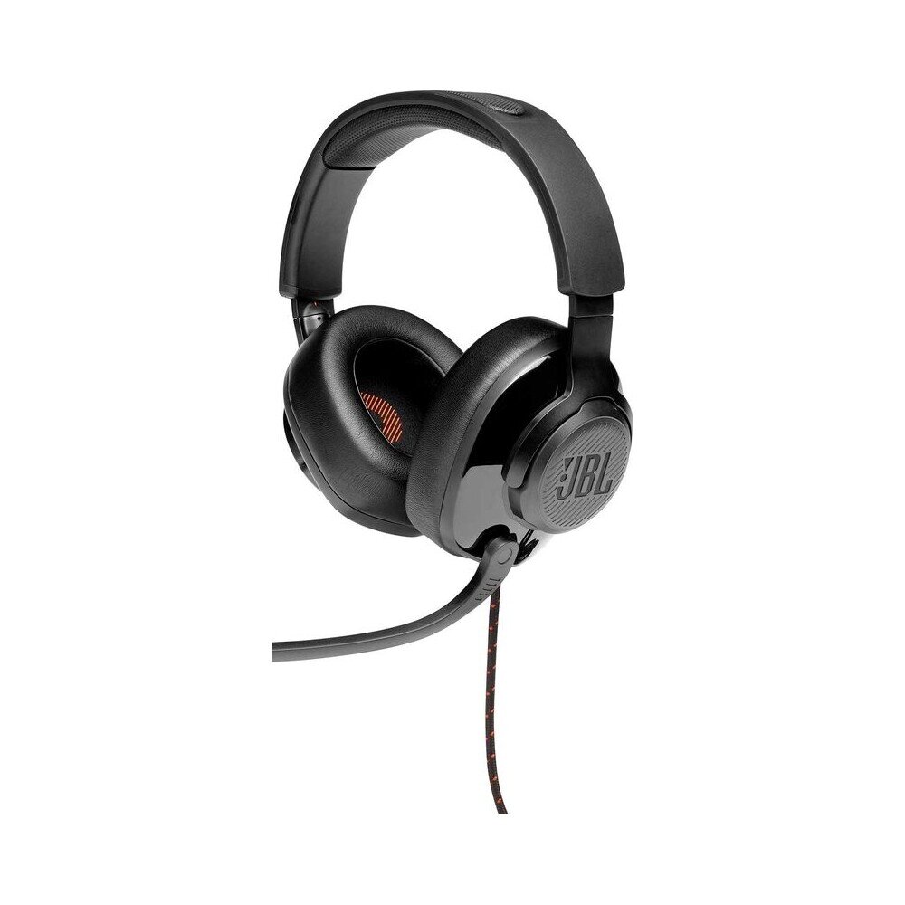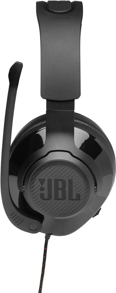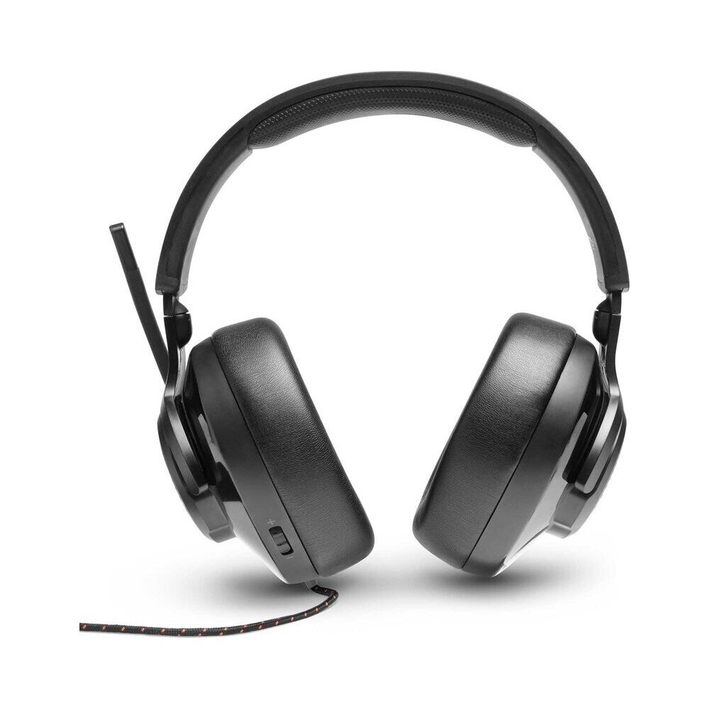 Kabelová sluchátka JBL Quantum 200 s designem přes uši a výklopným mikrofonem. JBL QuantumSOUND Signature, 50mm měniče, náušníky z komfortní paměťové pěny, lehký hlavový most, výklopný - směrový mikrofon s hlasovým zaostřením + automatickým zapínáním / vypínáním a funkcemi ztlumení, kompatibilní s Windows Sonic Spatial Sound.
