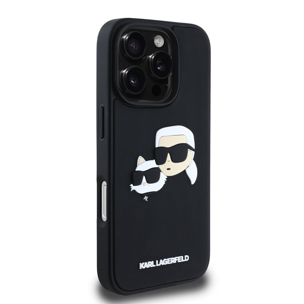 Karl Lagerfeld 3D Rubber Double Heads Zadní Kryt pro iPhone 16 Pro Black