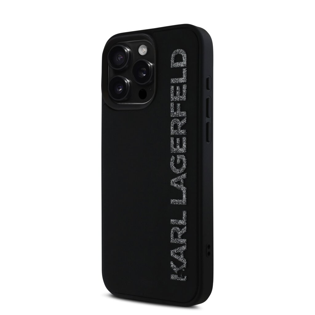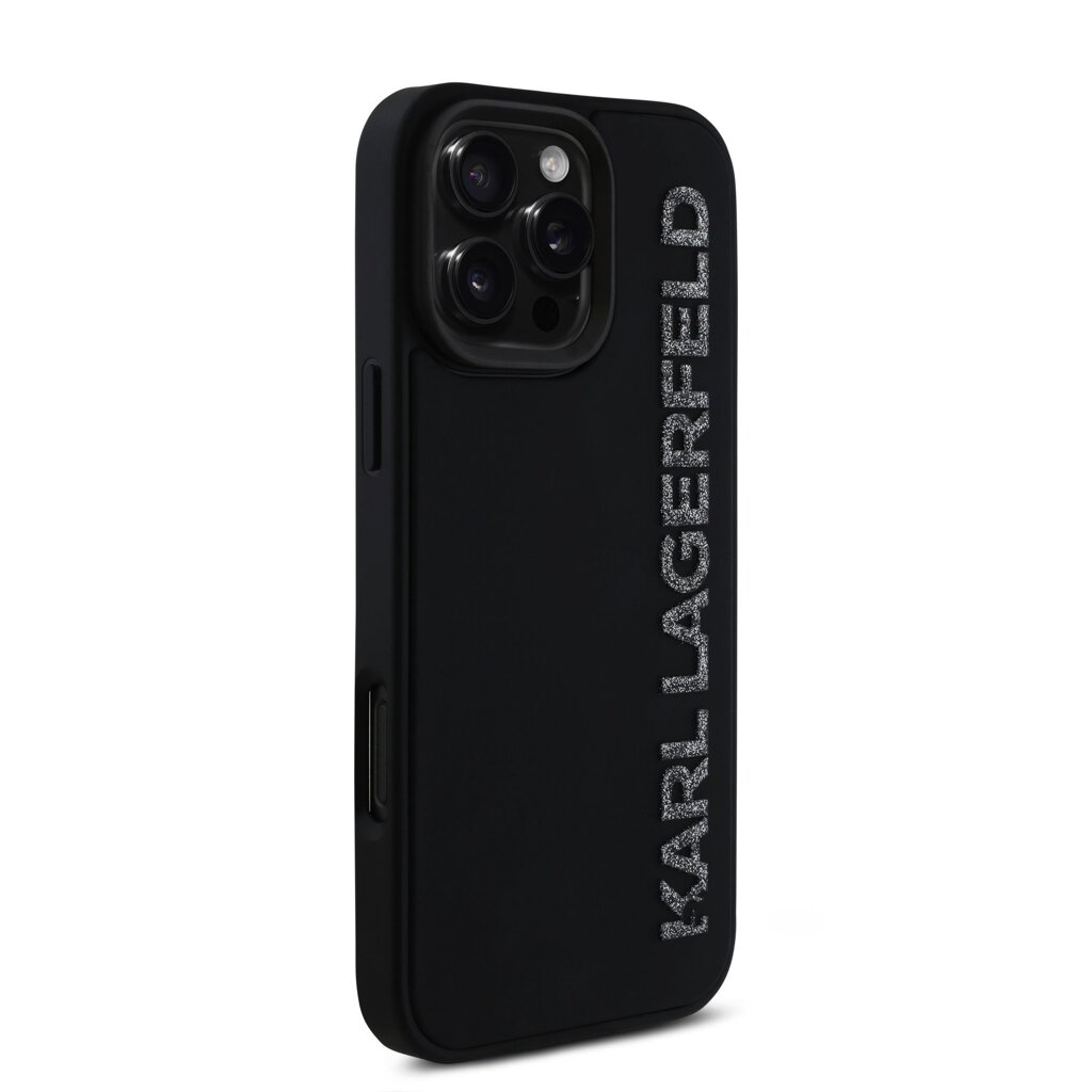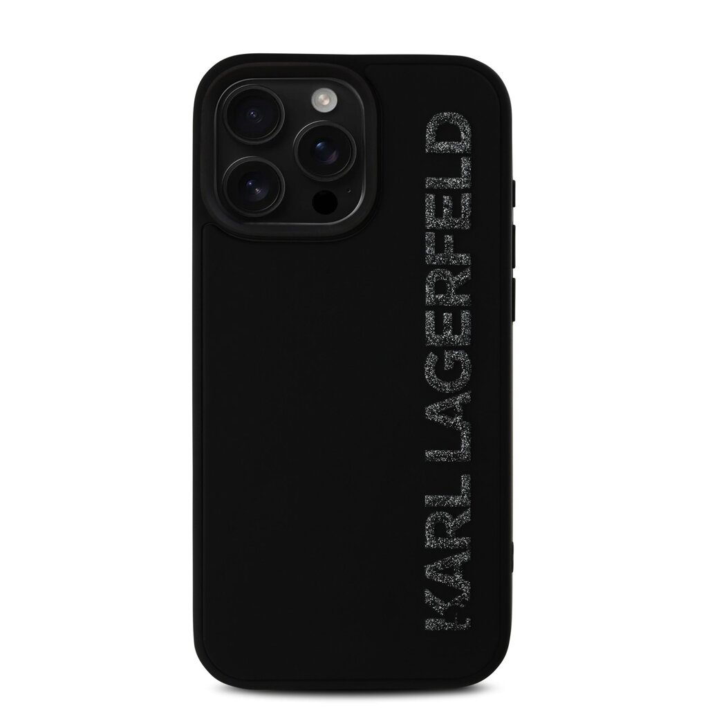 Karl Lagerfeld 3D Rubber Glitter Logo Zadní Kryt pro iPhone 16 Pro Max Black