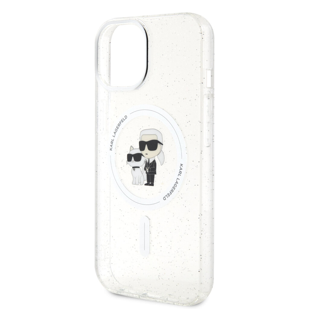 Karl Lagerfeld IML Glitter Karl and Choupette MagSafe Zadní Kryt pro iPhone 15 Transparent