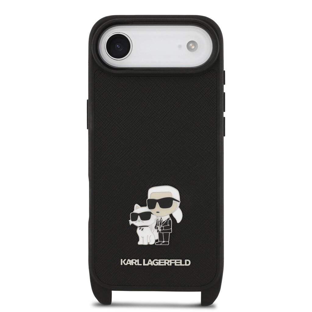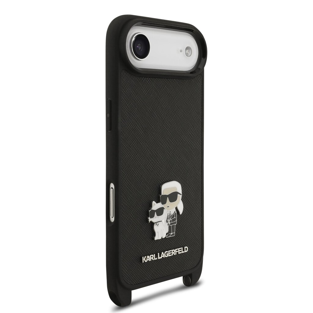 Karl Lagerfeld Saffiano Crossbody Popruh Metal Karl and Choupette Zadní Kryt pro iPhone Air Black