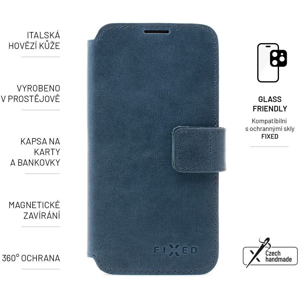 Kožené pouzdro typu kniha FIXED ProFit pro Apple iPhone 14 Plus, modré