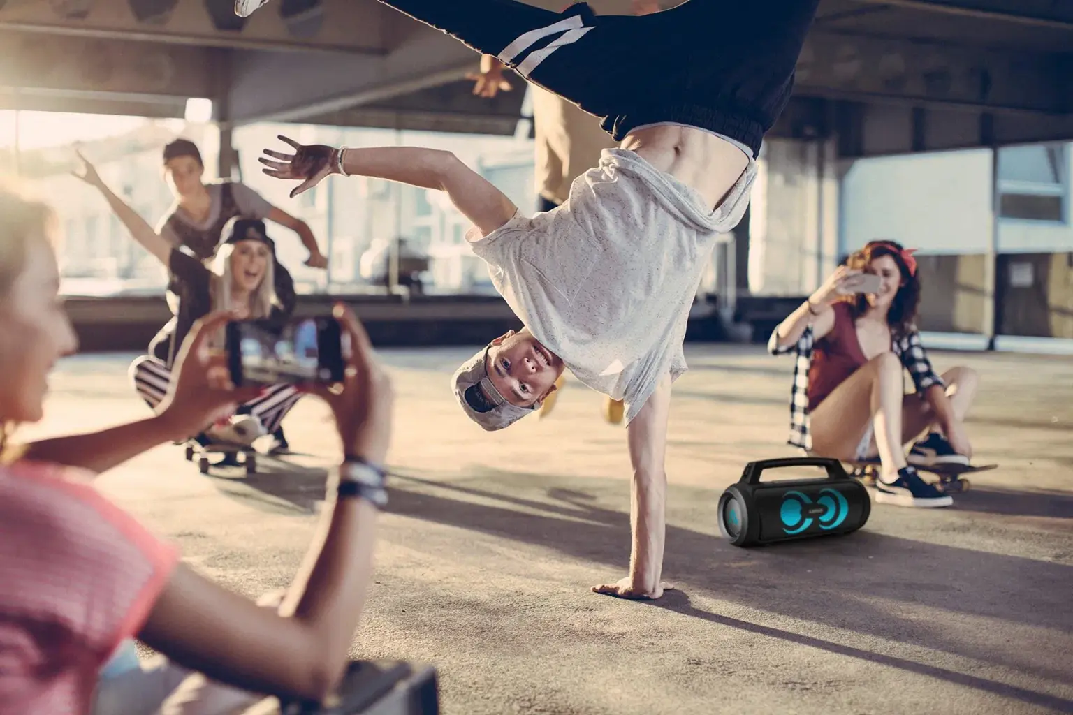 LAMAX BeatBass technologie přehraje zvuk v dokonalé kvalitě. Bohatý a silný zvuk ještě podporuje možnost zapnutí zvýraznění basů na ovládacím panelu a ovládání hlasitosti. Když budeš chtít rozjet ještě větší party, připoj si jednoduše pomocí technologie True Wireless další reproduktor PartyGo1 Play.