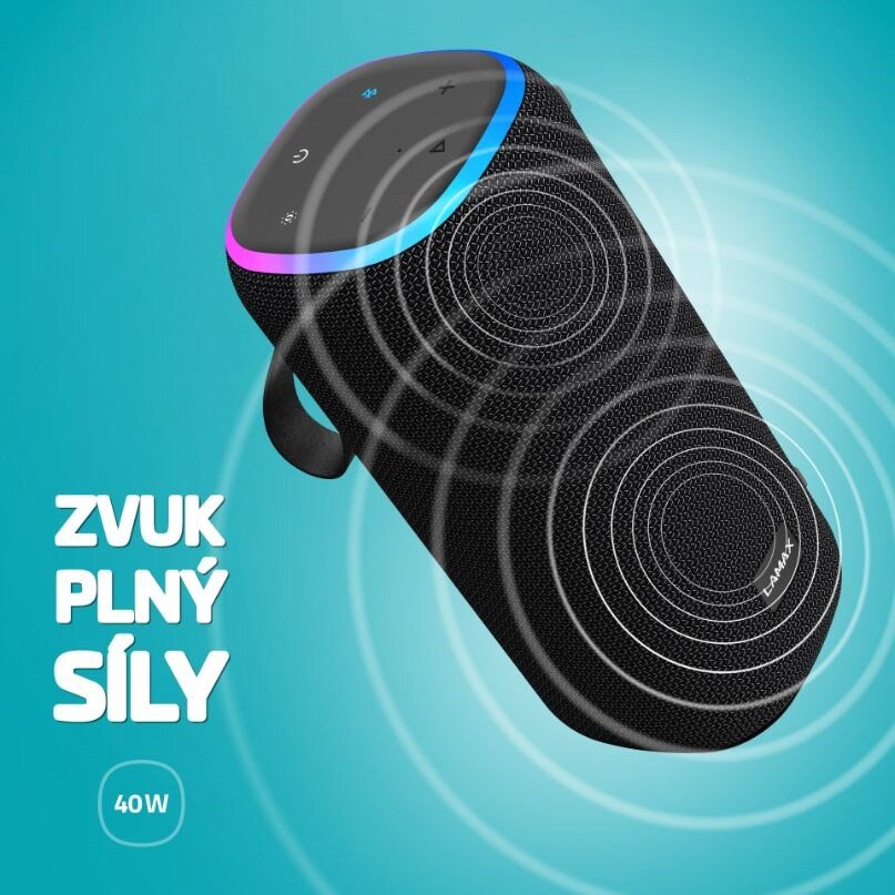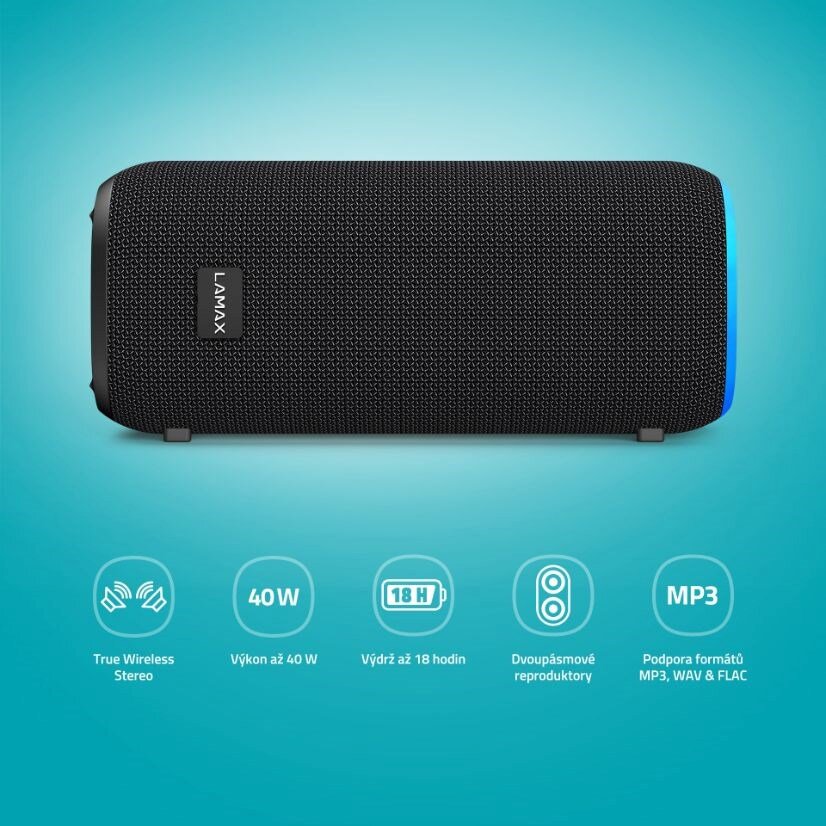 A když k tomu rozehrají svoji hru až 4 nastavitelné LED efekty, dostane akce ten správnej vibe. Naprosto nezapomenutelná se stane, když využiješ True wireless stereo funkci a znásobíš výkon připojením dalšího stejnýho repráku.