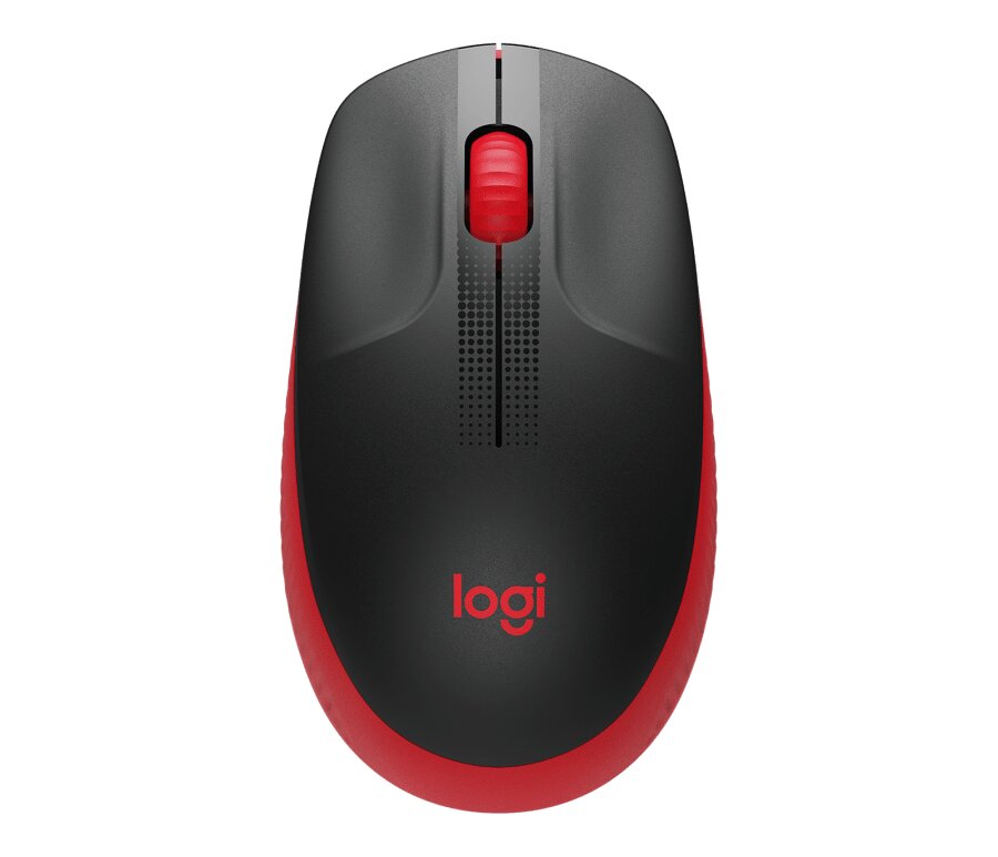 Logitech M190/Kancelářská/Optická/1 000 DPI/Bezdrátová USB/Černá-červená
