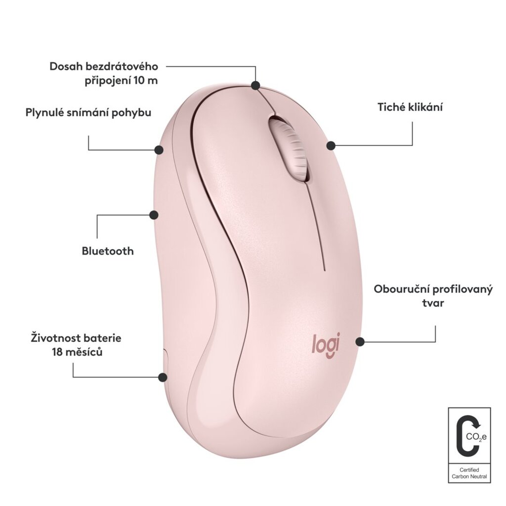 Logitech Wireless M240 Silent růžová, nano, optická myš bezdrátová