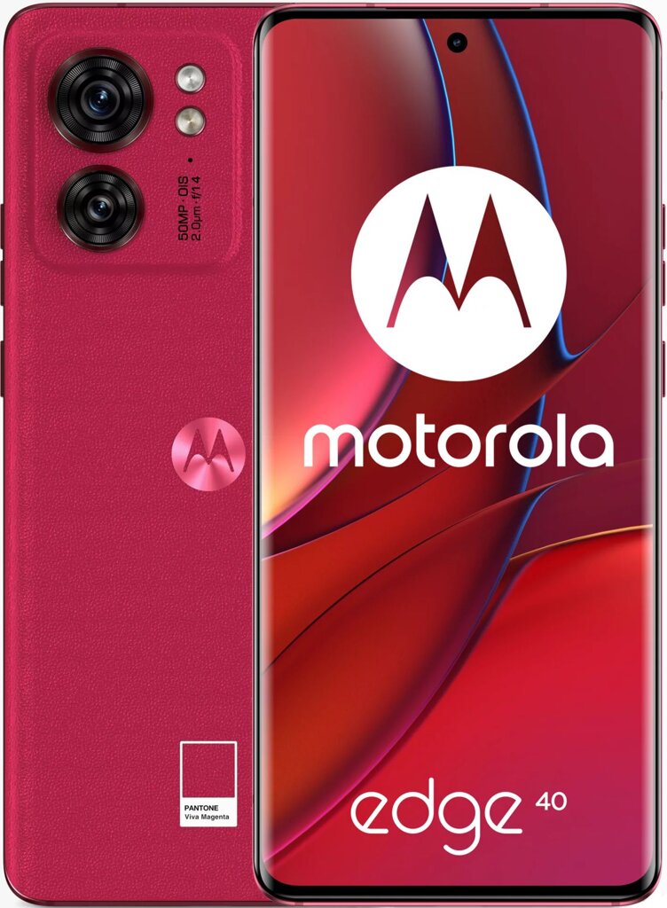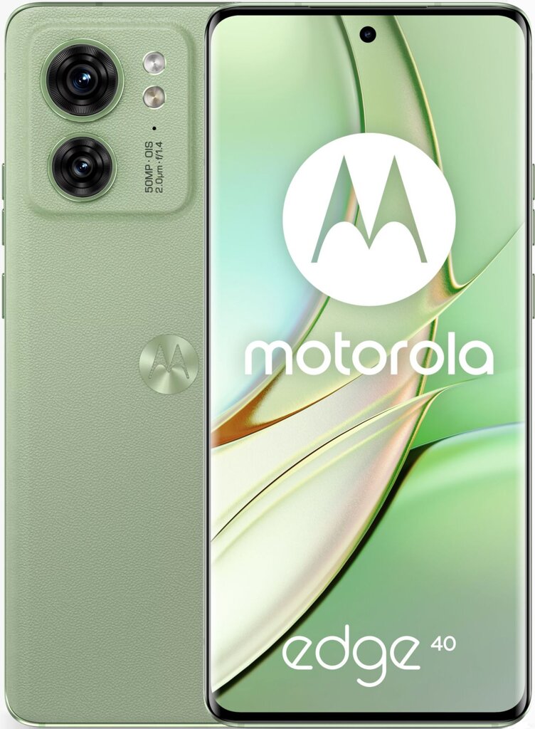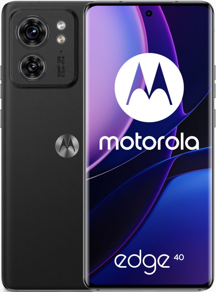 Smartphone se zakřivenými hranami Motorola Edge 40 5G Dual SIM přináší pokročilý kamerový systém a zvuk Dolby Atmos. Obnovovací frekvence 144 Hz, HDR10+, Wi-Fi 6, MediaTek Dimensity 8020, 5G, okrajová světla pro upozornění, 68W TurboPower + 15W bezdrátové, IP68, NFC, OS Android 13, 4400mAh baterie.
