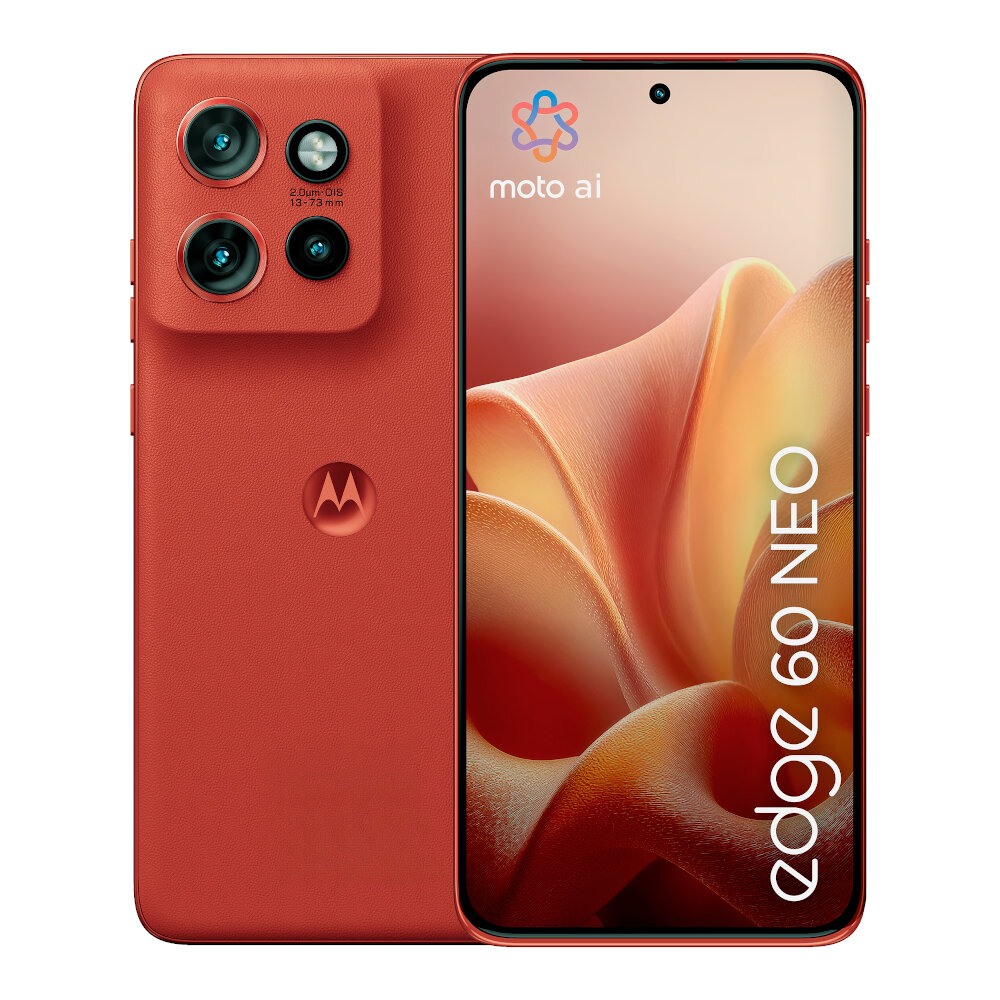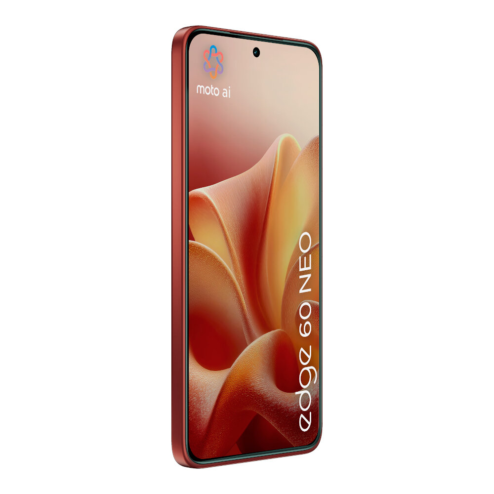 Motorola Edge 60 Neo přináší kompaktní rozměry, nízkou hmotnost a moderní vzhled, který zaujme na první pohled. Jeho 6,36″ provedení se příjemně drží, snadno se ovládá jednou rukou a díky tenkému rámečku působí elegantně a čistě. Povrch telefonu je jemný, příjemný na dotek a ladí s odstíny PANTONE, které dodávají zařízení osobitý styl. Barva PANTONE Frostbite připomíná svěží tóny přírody, PANTONE Grisaille zase nabízí minimalistickou eleganci a PANTONE Poinciana přitahuje pozornost výraznou energií červenooranžového odstínu.