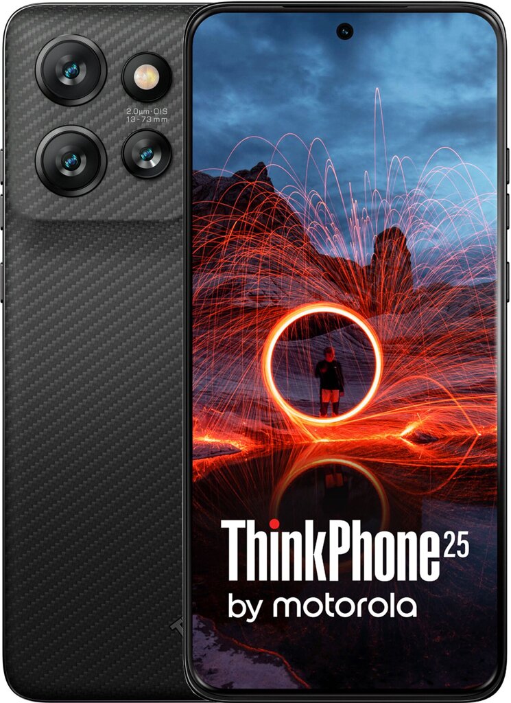 Odolný smartphone Motorola ThinkPhone 2025 Dual SIM s bezdrátovým nabíjením a TurboPower nabíjením. 4310mAh baterie, bezkontaktní NFC, procesor MediaTek Dimensity 7300, funkce Optimalizace RAM, norma MIL-STD-810H + certifikace IP68, sklíčko Gorilla Glass 7i, stereo reproduktory, Dolby Atmos, OS Android.