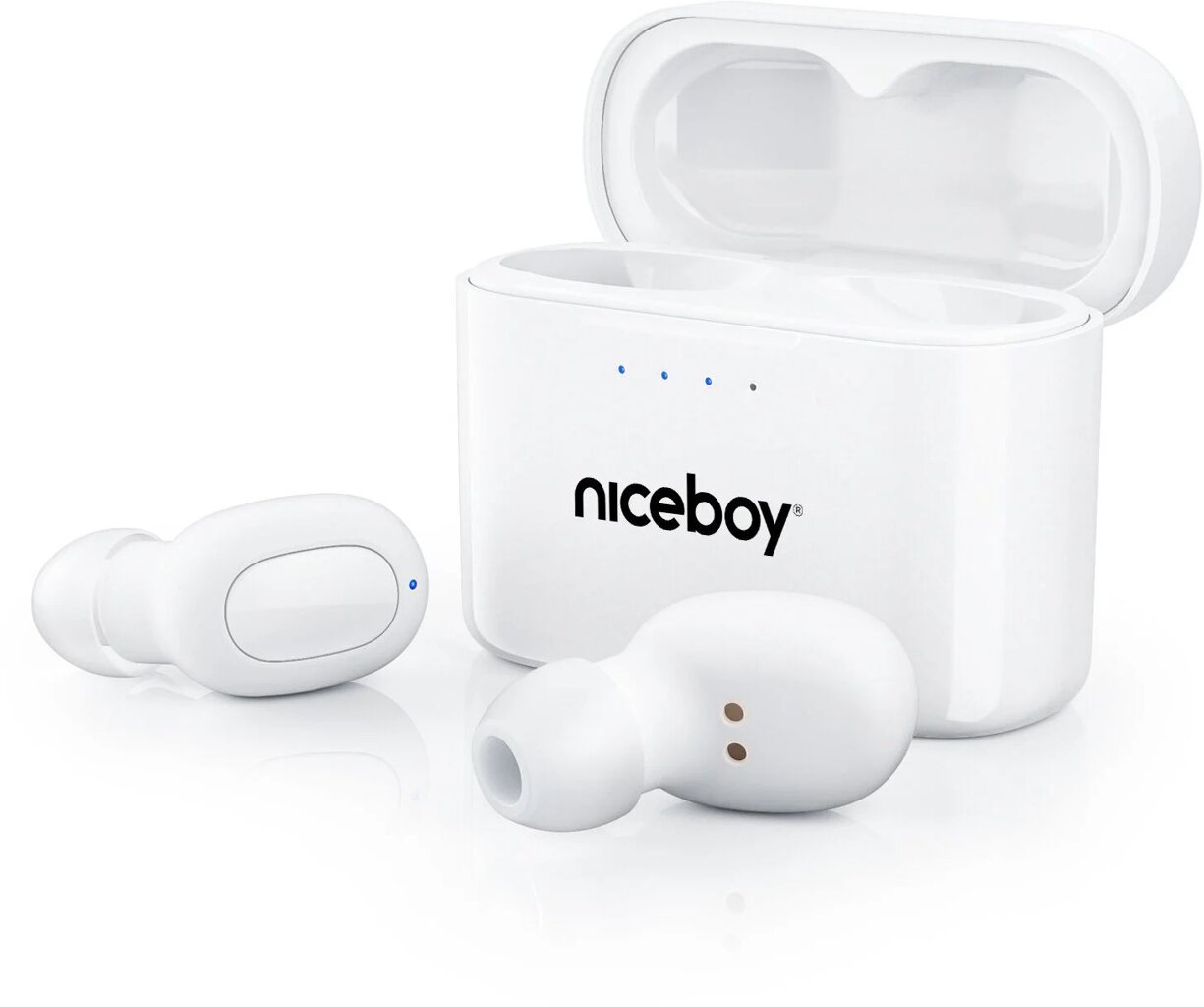 3. generace bezdrátových sluchátek Niceboy Hive Podsie 3 s výdrží baterie až 35 hodin. Stabilní zvuk, komfortní hands-free, mobilní aplikace Niceboy ION pro další nastavení, certifikace IP54, Bluetooth 5.1, USB-C, doba nabíjení 2 hodiny, 500mAh baterie dobíjecího boxu, BT kodeky AAC + SBC, podpora hlas. asistenta, multifunkční tlačítko.